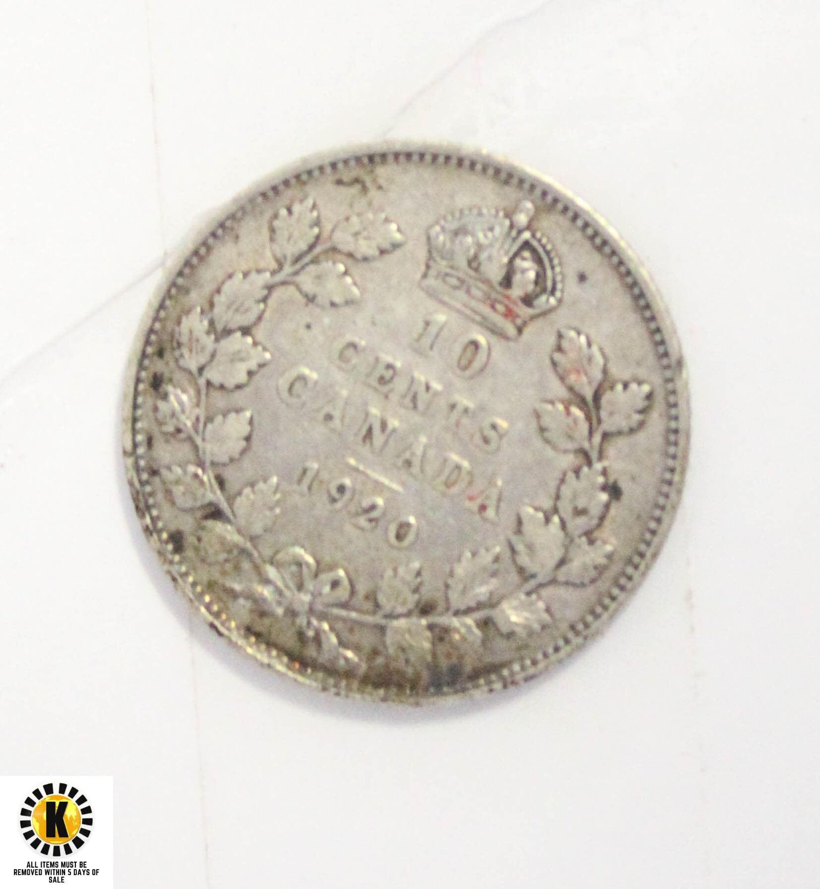 1920 SILVER CANADA 10 CENTS COIN