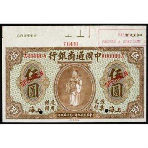 <style type="text/css"> body, td, th { font-family: Arial, Helvetica, sans-serif; font-size: 12px; color: #482424; margin: 0px; padding: 0px; } #header { background-image: url(http://www.bowersandmerena.com/ebay/images/template_v3_01.gif); clear: both; background-color: #590303; border-top-width: 2px; border-top-style: solid; border-top-color: #B38C4F; } #header #header_wrapper { height: 75px; clear: both; width: 800px; margin-right: auto; margin-left: auto; background-image: url(http://www.bowersandmerena.com/ebay/images/template_v3_03.gif); background-repeat: no-repeat; background-position: right; color: #F3EDCC; } #header #header_wrapper #header_logo { float: left; height: 75px; width: 444px; background-image: url(http://www.bowersandmerena.com/ebay/images/template_v3_02.gif); background-repeat: no-repeat; font-size: 10px; text-transform: capitalize; color: #B38C4F; } #header #header_wrapper #header_right { float: left; height: 75px; width: 356px; text-align: right; } #header #header_wrapper #header_right #headerLoginBtn { margin-bottom: 30px; } #header #header_wrapper #header_right input#txtSearch { color: #B49056; border: 1px solid #B49056; width: 175px; padding-top: 3px; padding-right: 3px; padding-bottom: 4px; padding-left: 3px; } #nav { height: 37px; background-image: url(http://www.bowersandmerena.com/ebay/images/template_v3_05.gif); clear: both; } #nav #nav_wrapper { height: 35px; width: 800px; margin-right: auto; margin-left: auto; border-left-width: 1px; border-left-style: solid; border-left-color: #B38C4F; } #nav #nav_wrapper a { padding-right: 15px; padding-left: 15px; border-right-width: 1px; border-right-style: solid; border-right-color: #B38C4F; height: 25px; padding-top: 10px; display: block; float: left; text-decoration: none; font-weight: bold; color: #5D0303; } #nav #nav_wrapper a:hover { color: #B38C4F; } #nav #nav_wrapper #search { float: right; padding-top: 7px; } #nav #nav_wrapper #search #txtSearch { font-family: Arial, Helvetica, sans-serif; font-size: 10px; text-transform: uppercase; color: #D2AE75; border: 1px solid #B38C4F; padding: 3px; } #content_bgd { background-image: url(http://www.bowersandmerena.com/ebay/images/template_v3_09.gif); background-repeat: repeat-y; background-position: center; padding-top: 15px; padding-bottom: 15px; background-color: #FBFBDB; } #content_wrapper { clear: both; height: auto; width: 800px; margin-right: auto; margin-left: auto; } .LotDetailWhite { line-height:normal; font-size:13px; font-family: arial,helvetica,sans-serif; color: White; font-weight: bold; } .LotDetailInformation { line-height:normal; font-size: 13px; font-family: arial,helvetica,sans-serif; } .LotDetailMessage { line-height:normal; font-size: 13px; font-family: arial,helvetica,sans-serif; color: red; } } tr.HeaderAuctionTitle td { color: #000000; font-weight: bold; padding: 2px; background-image: url(http://www.bowersandmerena.com/ebay/images/template_v3_05.gif); background-repeat: repeat-x; border-bottom-width: 1px; border-bottom-style: solid; border-bottom-color: #B38C4F; } table.AuctionSummary a, table.AuctionSummary a:link, table.AuctionSummary a:visited { color: #0000FF; text-decoration: none; } } td.tableHeaderLeft { border-left-width: 1px; border-left-style: solid; border-left-color: #B38C4F; } td.tableHeaderRight { border-right-width: 1px; border-right-style: solid; border-right-color: #B38C4F; } td.tableCellMiddle { border-left-width: 1px; border-left-style: solid; border-left-color: #B38C4F; border-right-width: 1px; border-right-style: solid; border-right-color: #B38C4F; padding: 5px; } tr.footer td { border-top-width: 1px; border-top-style: solid; border-top-color: #B38C4F; } </style> </head> <body> <div id="header"> <div id="header_wrapper"> <div id="header_logo"> </div> <div id="header_right"> </div> </div> </div> <div id="nav"> <div id="nav_wrapper"> <a href="http://www.bowersandmerena.com">Our eBayLive Auctions</a> <a href="#PaymentInfo">Payment Information</a> <a href="#ShippingInfo">Shipping Information</a> <a href="#About">About Bowers and Merena</a> </div> </div> <div id="content_bgd"> <div id="content_wrapper"> <table width="100%" border="0" cellpadding="5" cellspacing="0" class="AuctionSummary"> <tbody> <tr class="HeaderAuctionTitle" style="height: 25px;"> <td align="left" class="tableHeaderLeft" > </td> <td align="center" class="tableHeaderRight"> <span style="font-size: large;">Lot #48. China--Empire. Republic, Commercial Bank of China, 1920 Shanghai Dollar Issue.</span> </td> </tr> <tr> <td colspan="3" class="tableCellMiddle"> Lot of 4 Specimen notes, P-3s, $5, purple; P-4As, $5, brown with large upper margin; P-5s, $10, yellow with large upper margin; P-6s, $10, red; All are in Unc.-Choice Unc. condition. Scarce group of attractive notes.