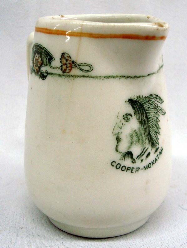 1920 Shenango Indian Head China Pitcher, made for the Cooper Mowatah Hotel located in Chicago, Ill. Measures approx. 3.5''H