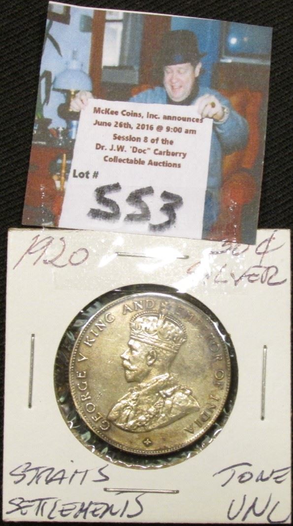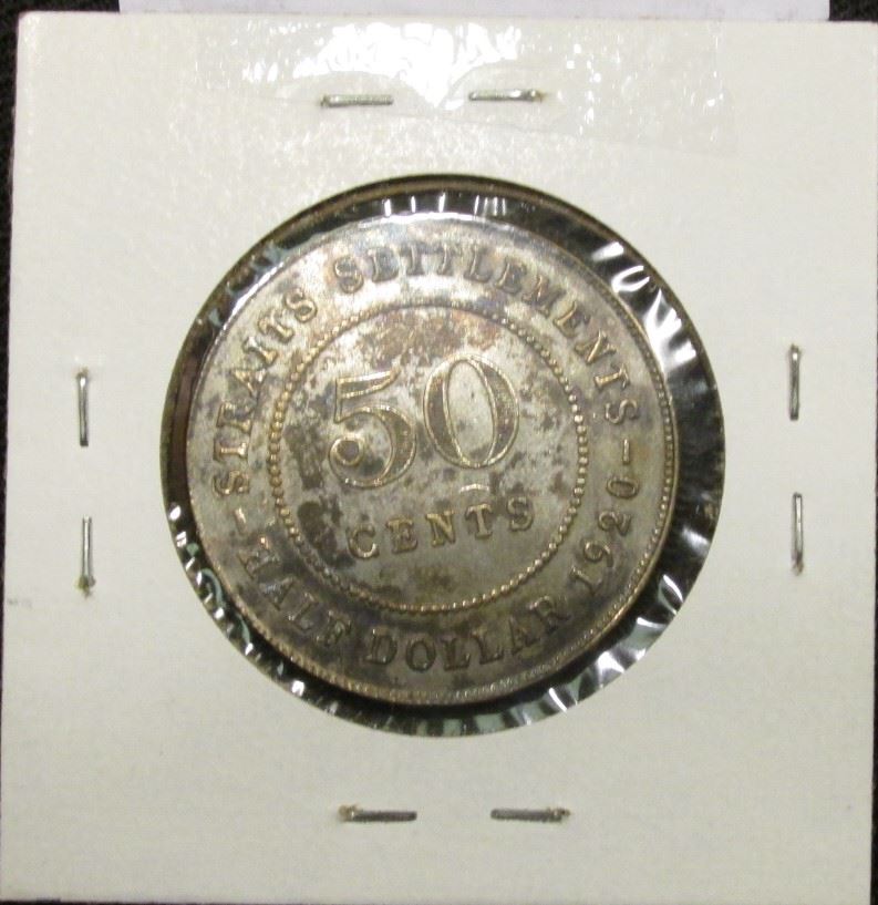 1920 Silver 50C Straits Settlements Attractive Tone Unc
