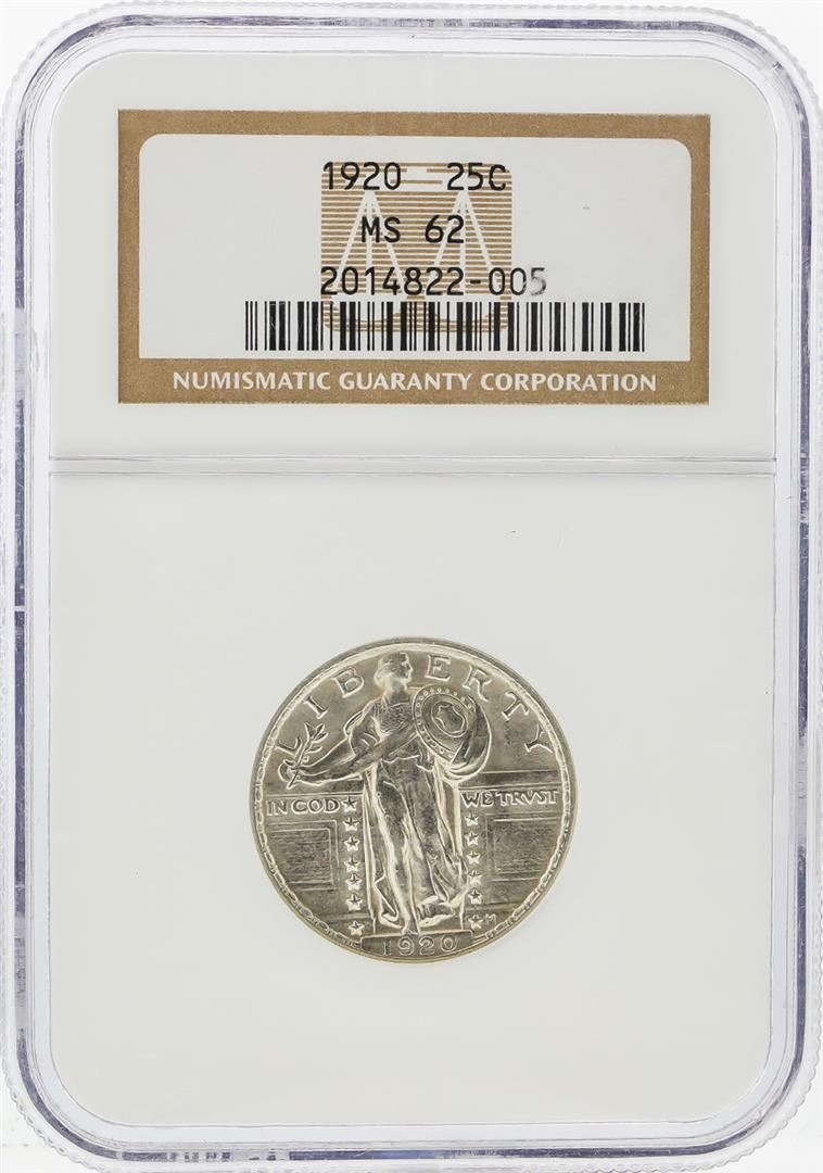 One 1920 Standing Liberty Quarter NGC Graded MS62. NGC Certified.