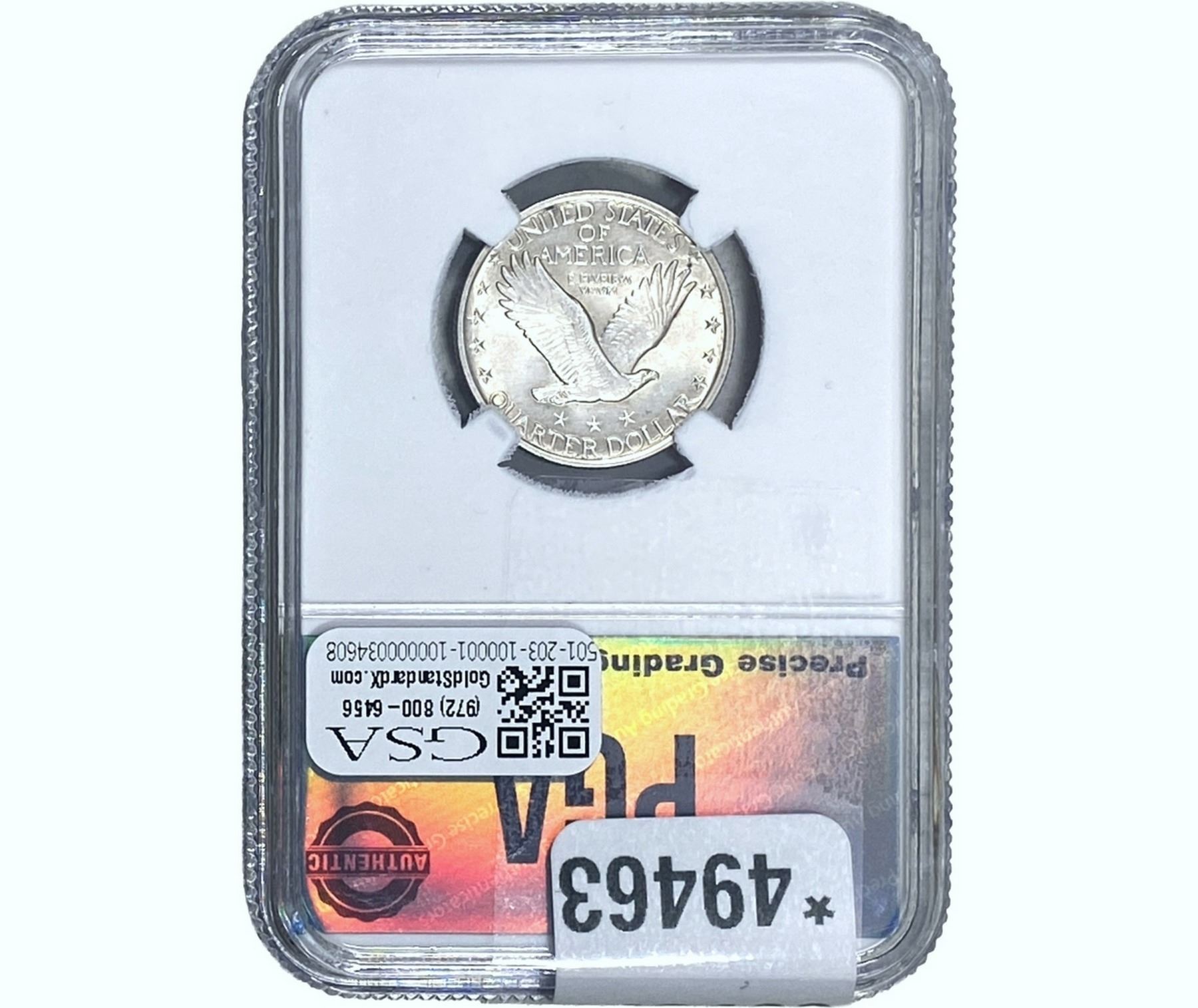 l. All non-certified coins and currency are guaranteed genuine, but are not guaranteed as to grade, since grading is a matter of opinion, an art and not a science, and therefore the description rendered by GSA or any third-party grading service may not agree with the opinion of others (including trained experts), and the same expert may not grade the same item with the same grade at two different times. GSA may, but is not obligated to, express an opinion as to non-certified numismatic items, in GSA’s opinion, or by its employees’ experience and the current interpretation of the American Numismatic Association’s standards as of the date the catalog was prepared. There is no guarantee or warranty expressed or implied that the grading opinions utilized by GSA, if any, will meet the standards of any grading service at any time in the future.