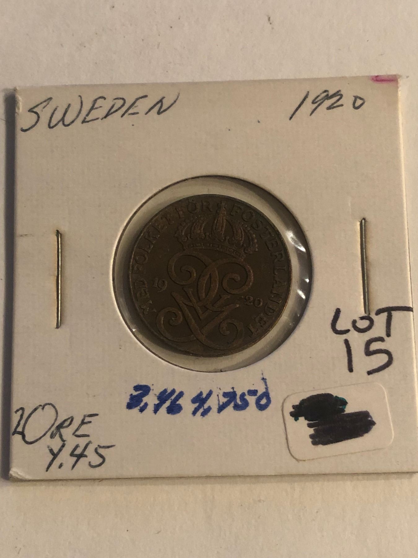 1920 Sweden 2 Ore Coin Nice Early Coin