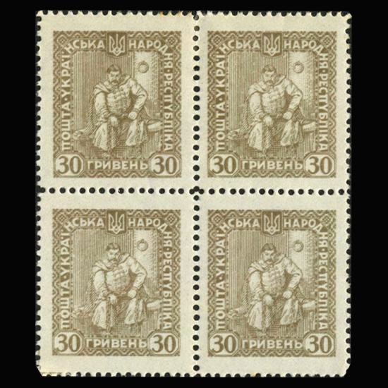 1920 Ukraine 30 Kopek Postage Stamp Mint Block of 4 NEVER ISSUED (STM-0374)
