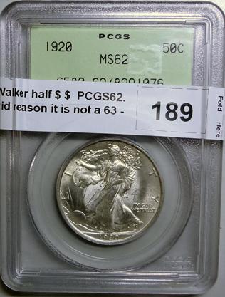 1920 Walker half $ $ PCGS62. No va;id reason it is not a 63