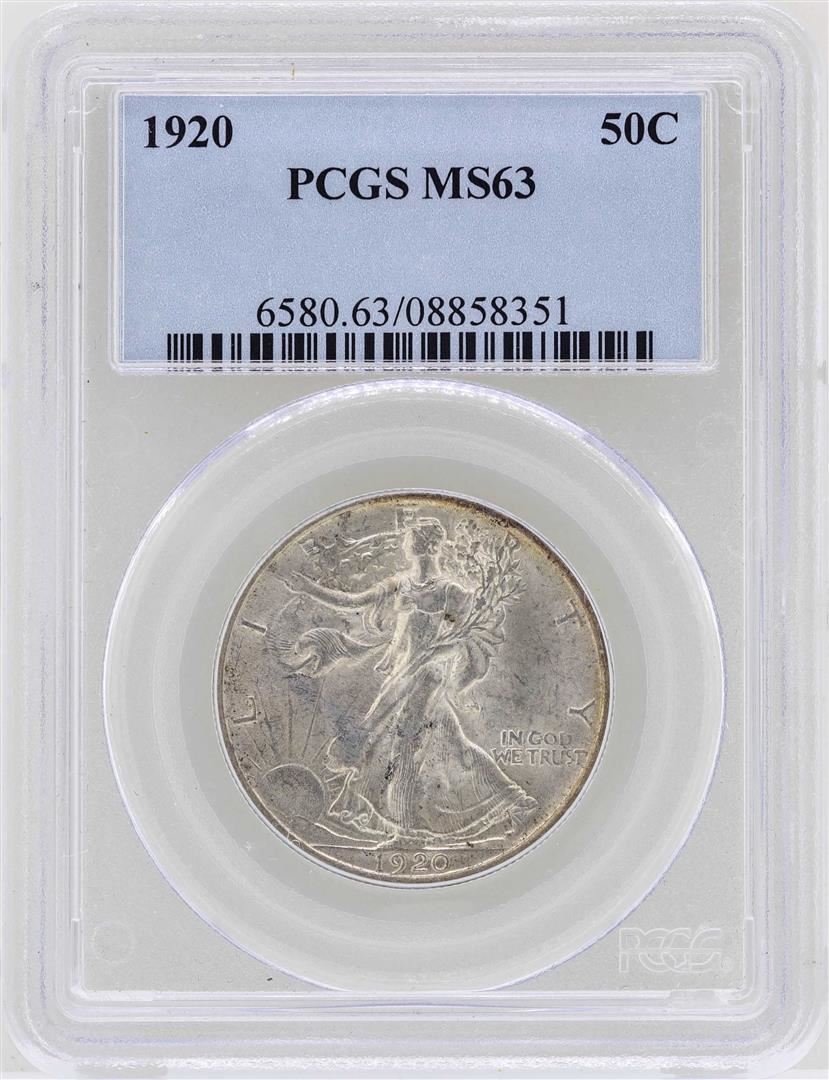 One 1920 Walking Liberty Half Dollar Coin PCGS MS63. PCGS Graded.