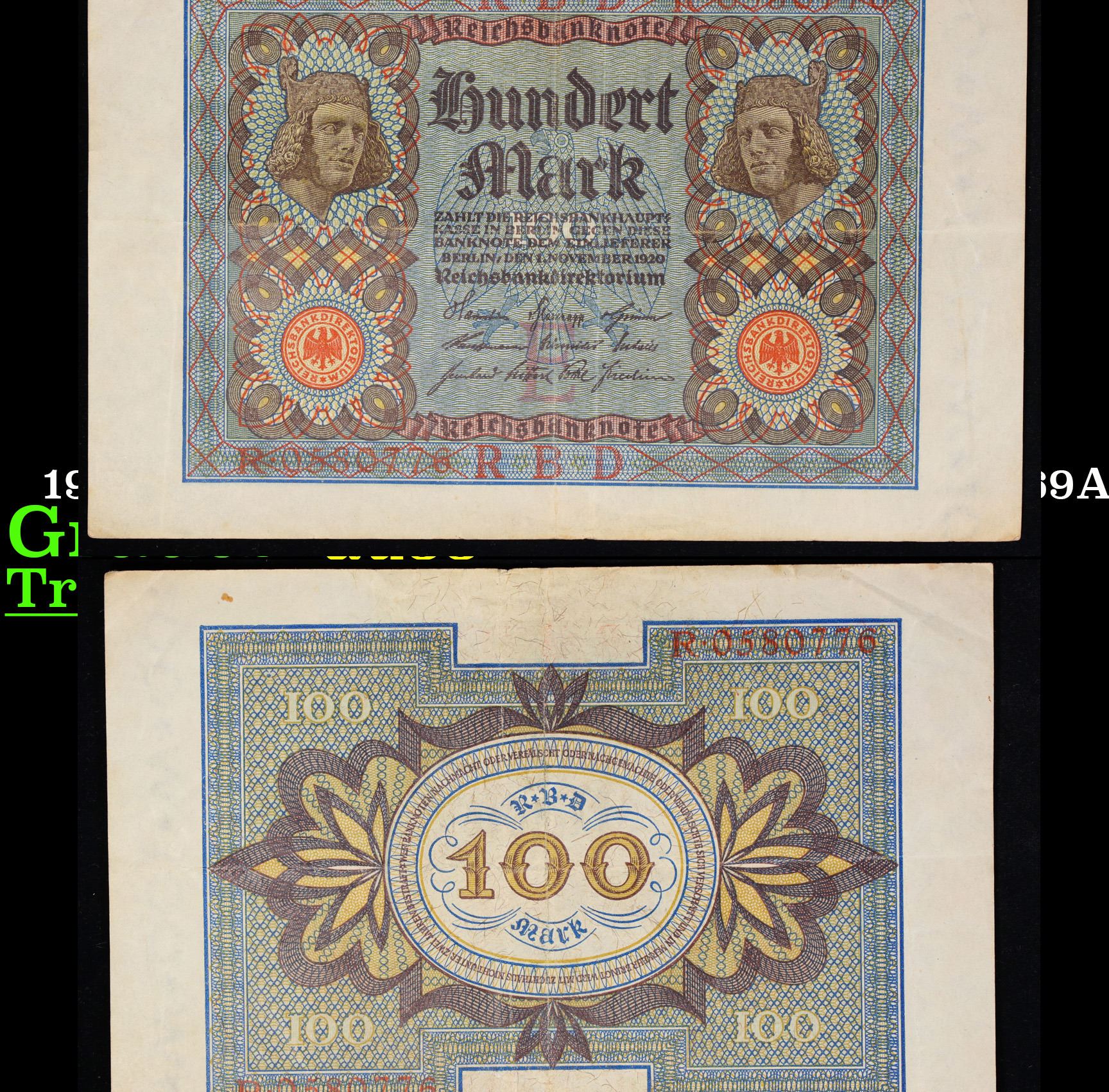 1920 Weimar Germany 100 Mark Note P# 69A Grades Select AU. In the early 1920s, post-WWI Germany saw its economy spiraling out of control. Hyperinflation started directly after the war in 1918, but truly took over the Weimar Republic from 1921 to 1923. The value of the Mark declined incredibly rapidly. 1 USD was equal to 50 German Marks at the beginning of 1920. Toward the end of 1923, 1 USD was equal to over 4,200,000,000,000 German Marks. At times, denominations of the Mark became less valuable than the paper and labor to print it almost immediately after printing. Thus, denominations of the Mark notes became incredibly large, ending up in the tens of trillions.