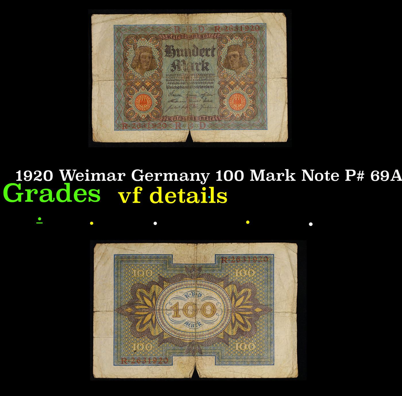 1920 Weimar Germany 100 Mark Note P# 69A Grades vf details.