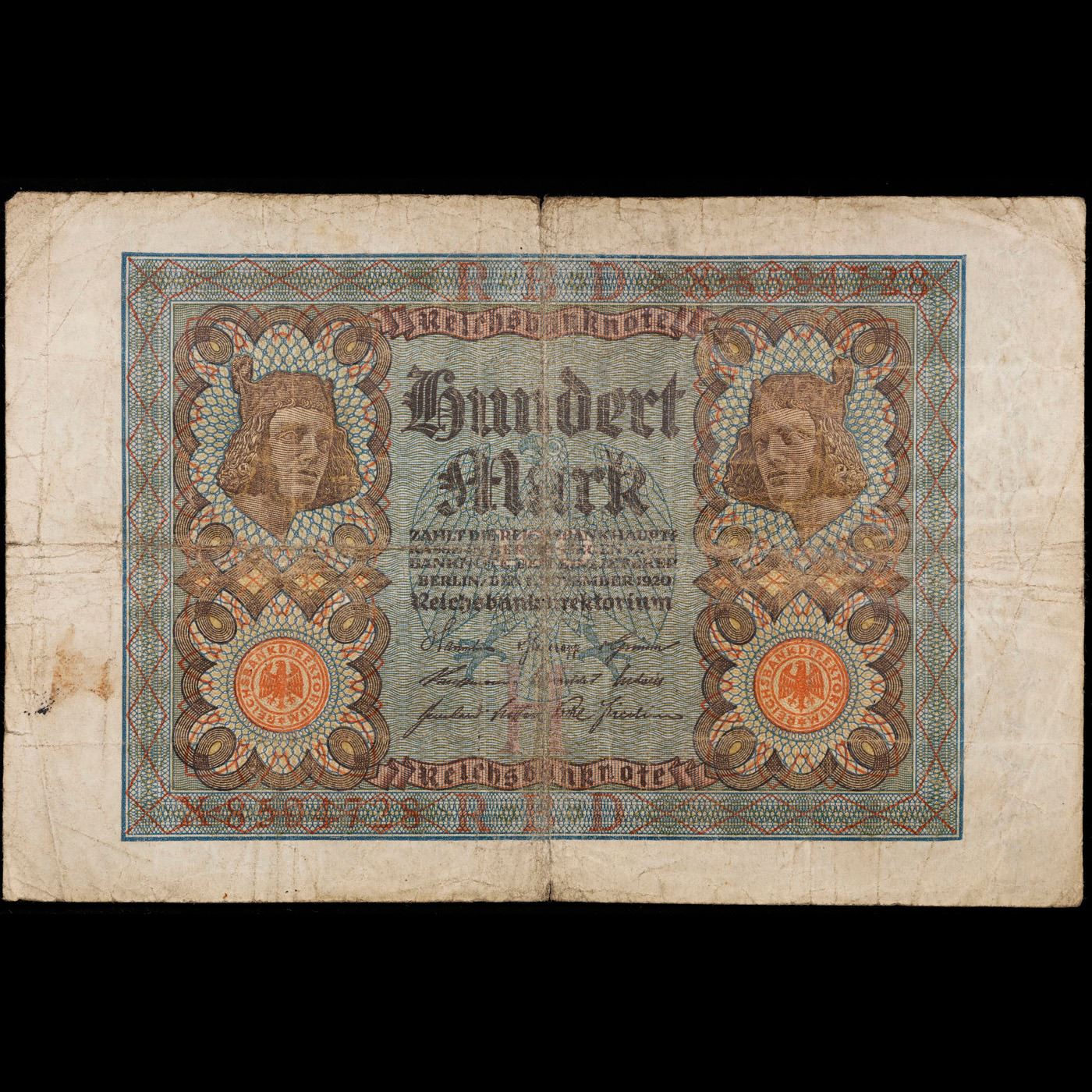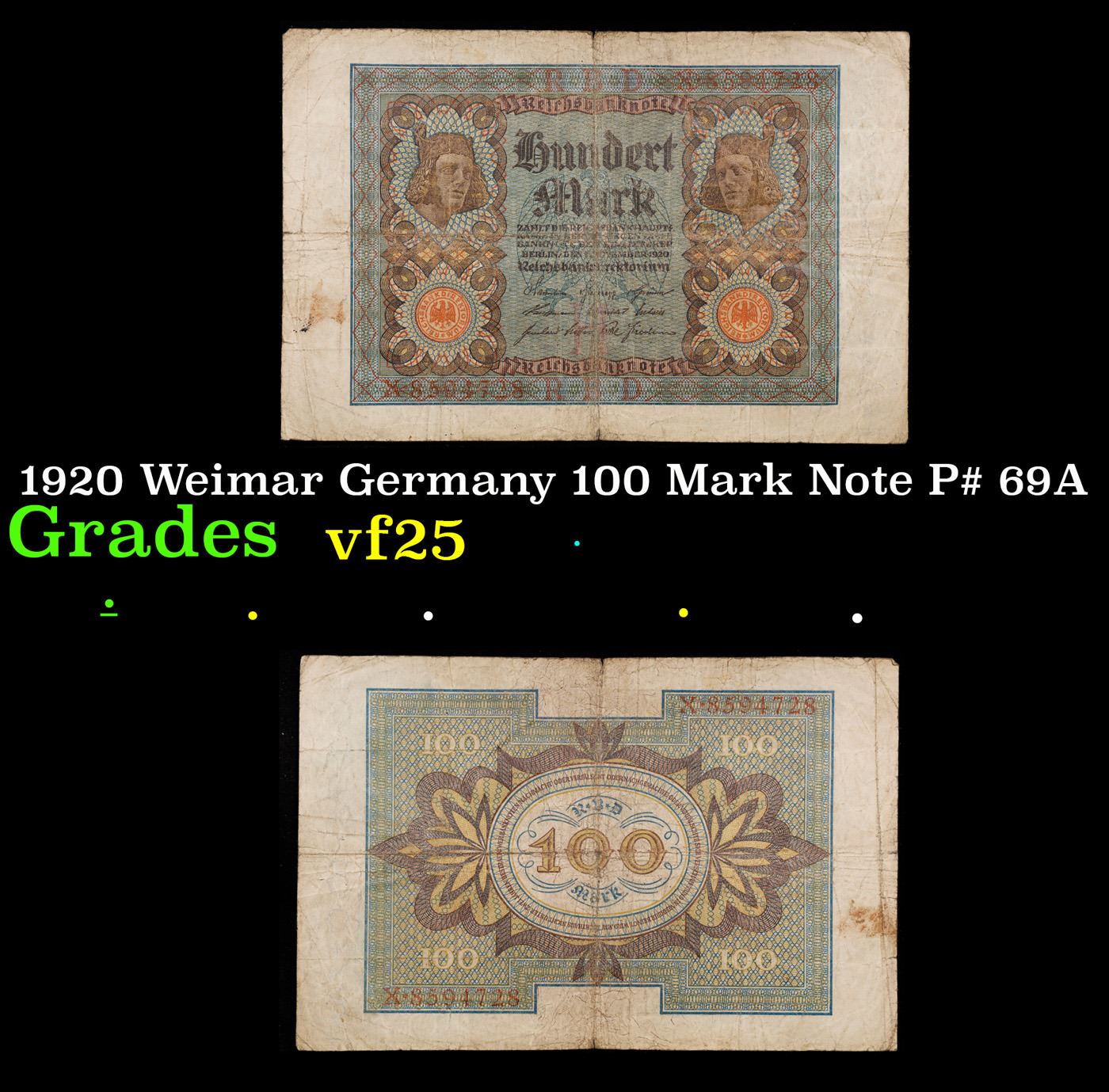 1920 Weimar Germany 100 Mark Note P# 69A Grades vf+