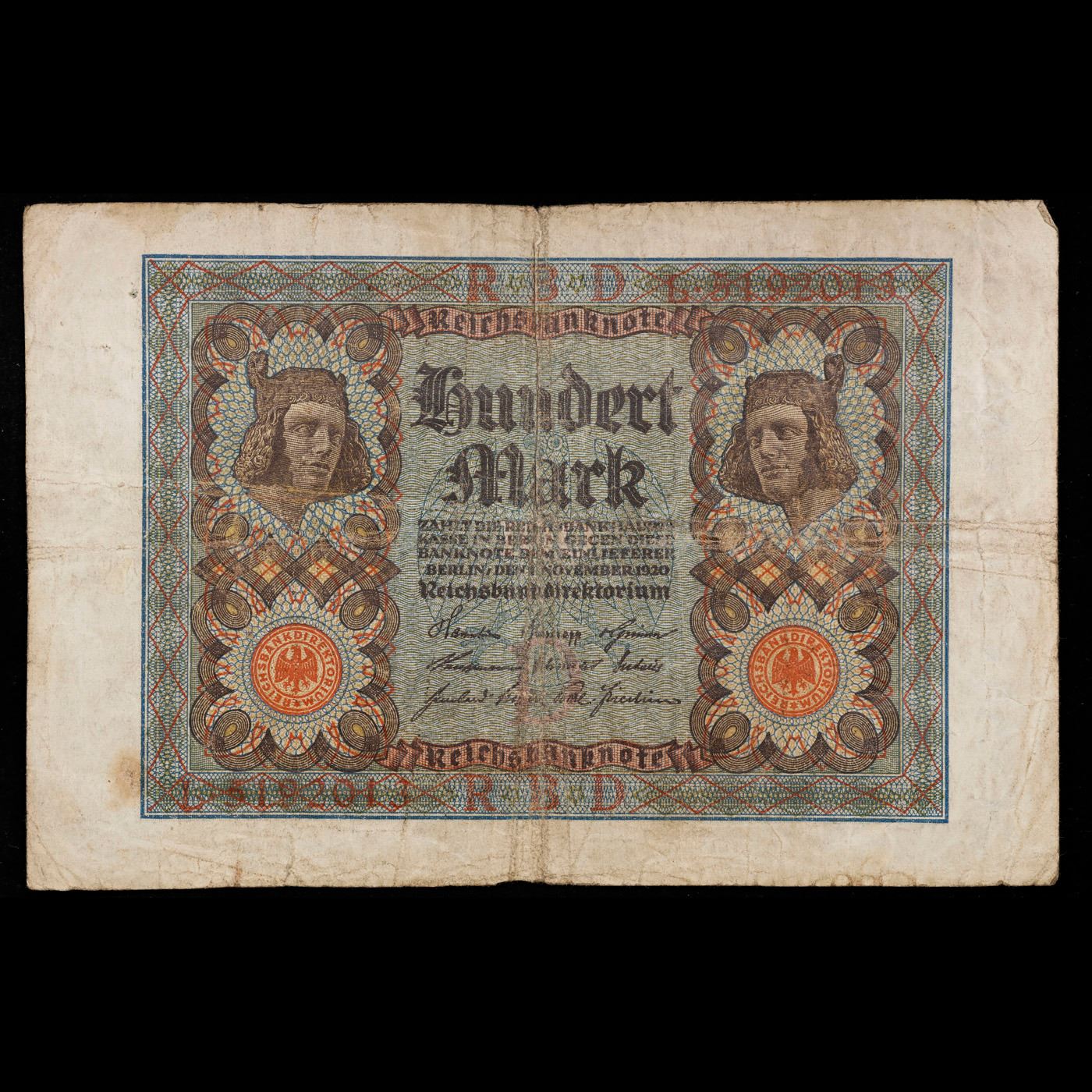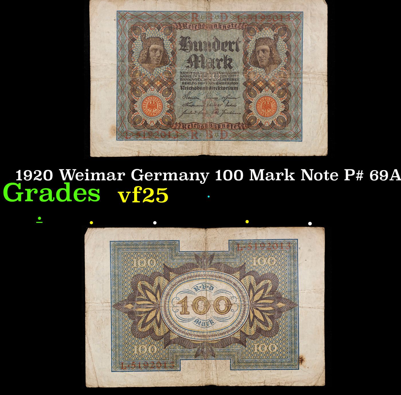 1920 Weimar Germany 100 Mark Note P# 69A Grades vf+.