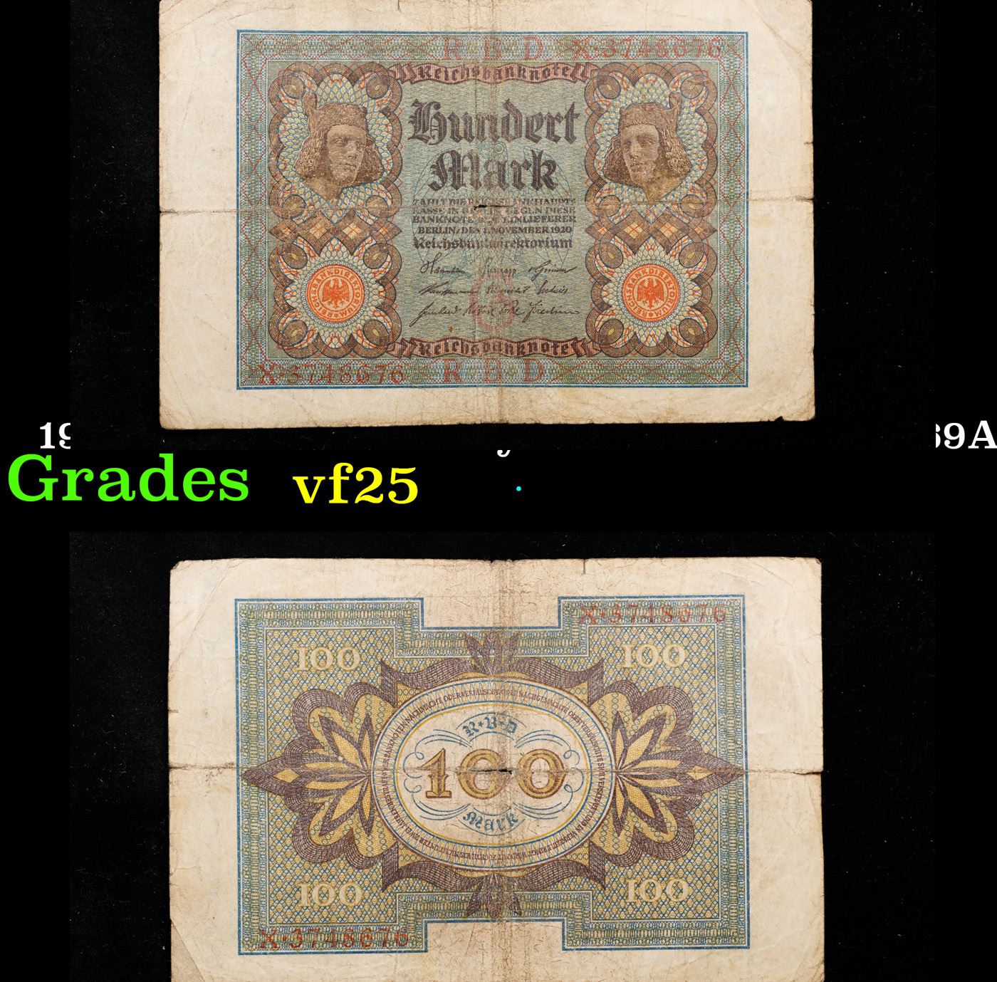 1920 Weimar Germany 100 Mark Note P# 69A Grades vf+. Notgeld is German for "emergency/necessity money". Notgeld typically refers to German and Austrian notes produced in the post-WWI period. Somewhat similar to Depression Scrip in the USA, these notes were issued when there wasn'te nough state-produced money available from the central bank. Issuing institutions were often a town's savings banks, municipalities, or private or state-owned firms. Nearly all issues contained an expiry date, after which time they were invalid. Issues without dates ordinarily had an expiry announced in a newspaper or at the place of issuance.