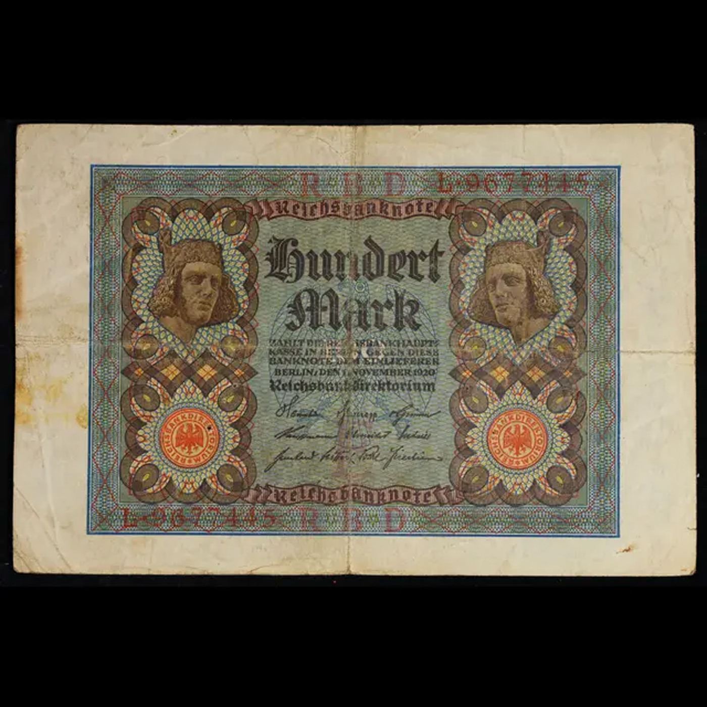 1920 Weimar Germany 100 Mark Note P# 69A Grades vf+.