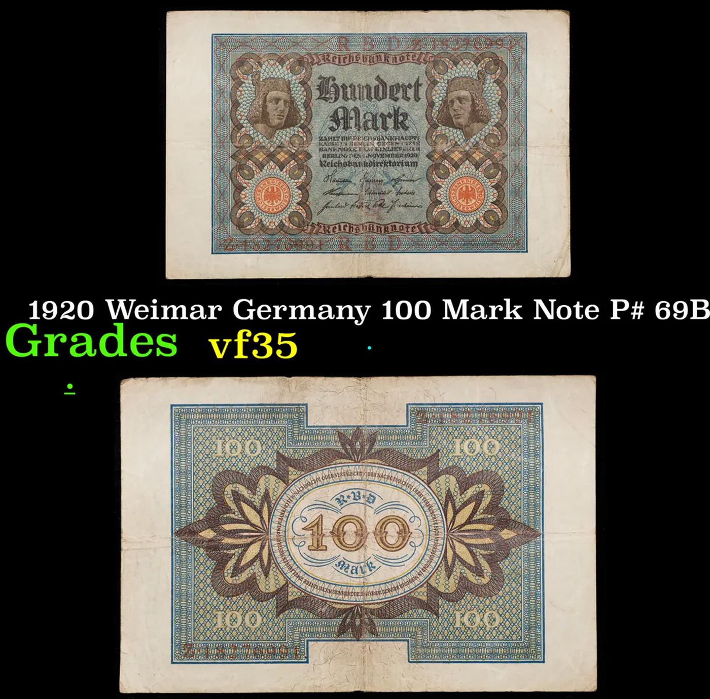 1920 Weimar Germany 100 Mark Note P# 69B Grades vf++.