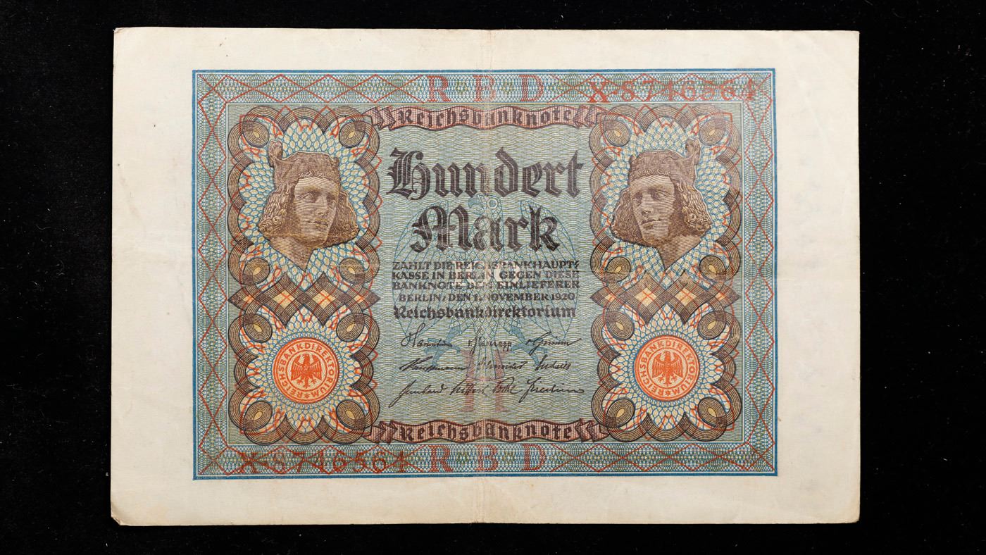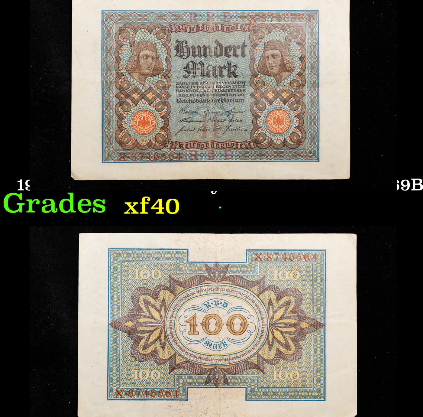 1920 Weimar Germany 100 Mark Note P# 69B Grades xf. From 1871 to 1914 the German Mark was known as the "Goldmark", as it was on the gold standard. During WWI, like most nations, Germany removed the gold backing and ceased circulation of gold coins. The Goldmark was the culmination of years of effort put into unifying the currency of Germany.