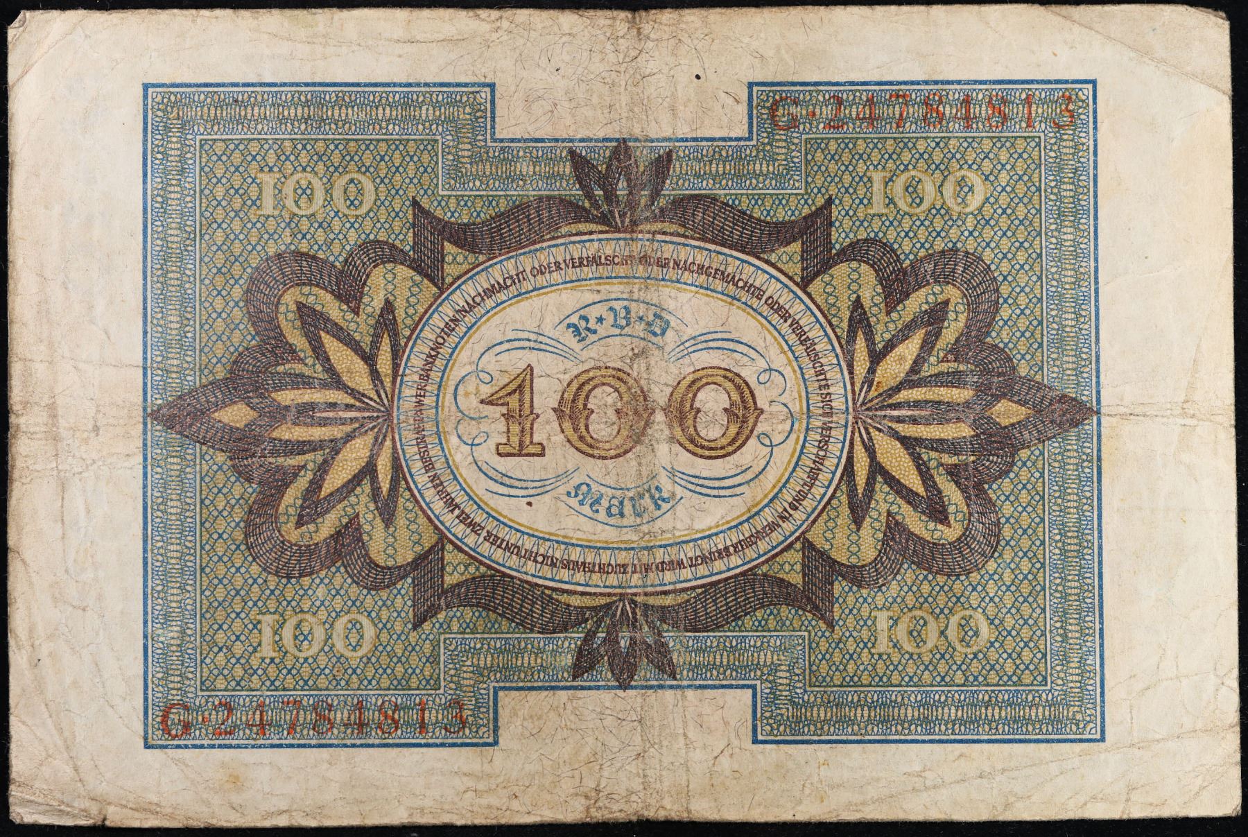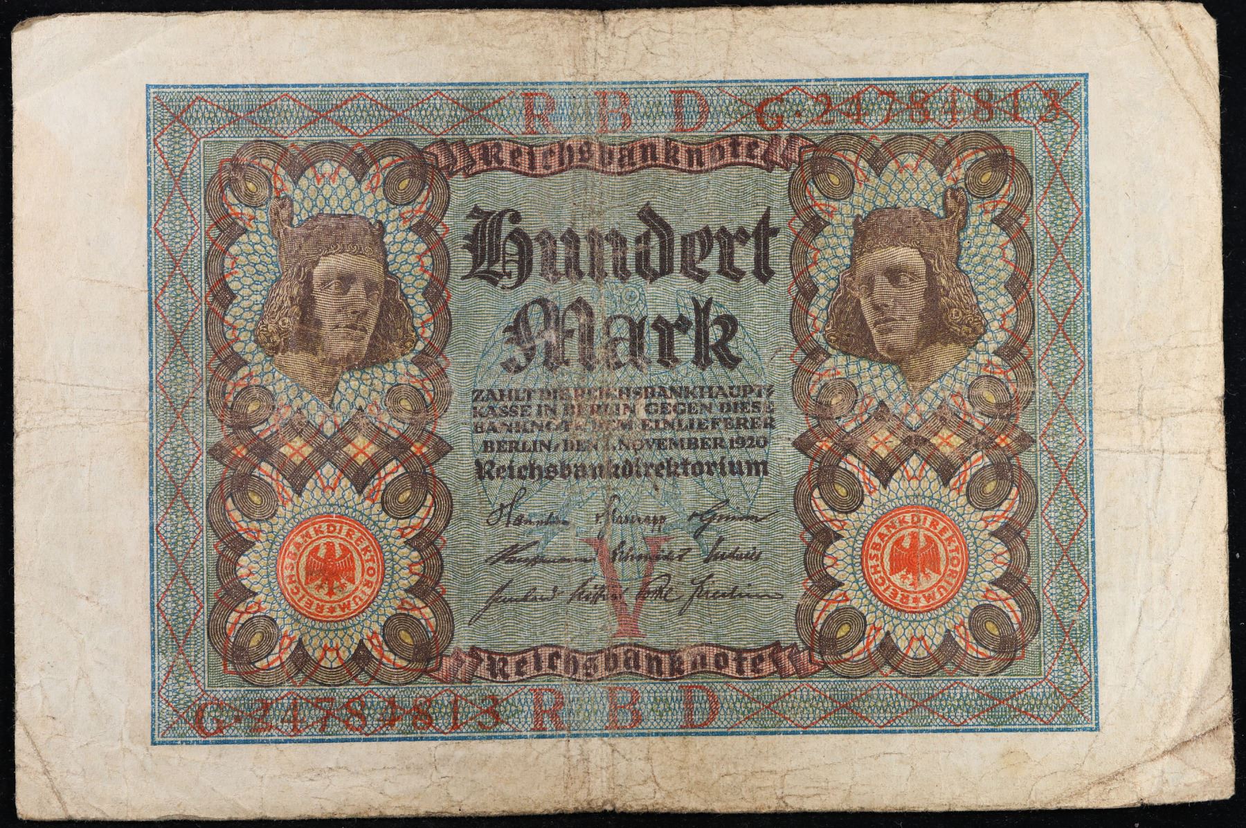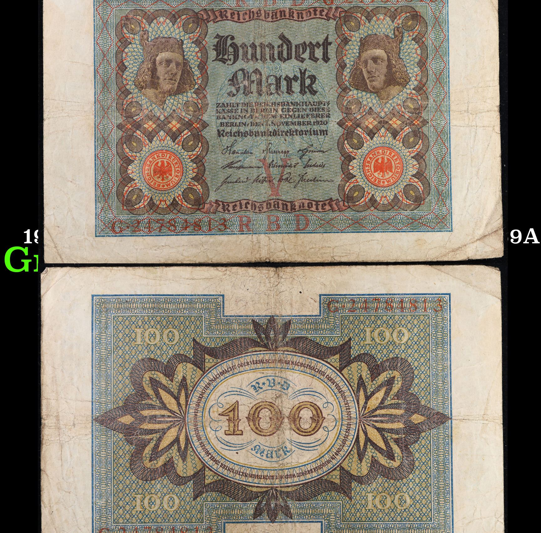 1920 Weimar Germany 100 mark Note P: 69A Grades vf+.