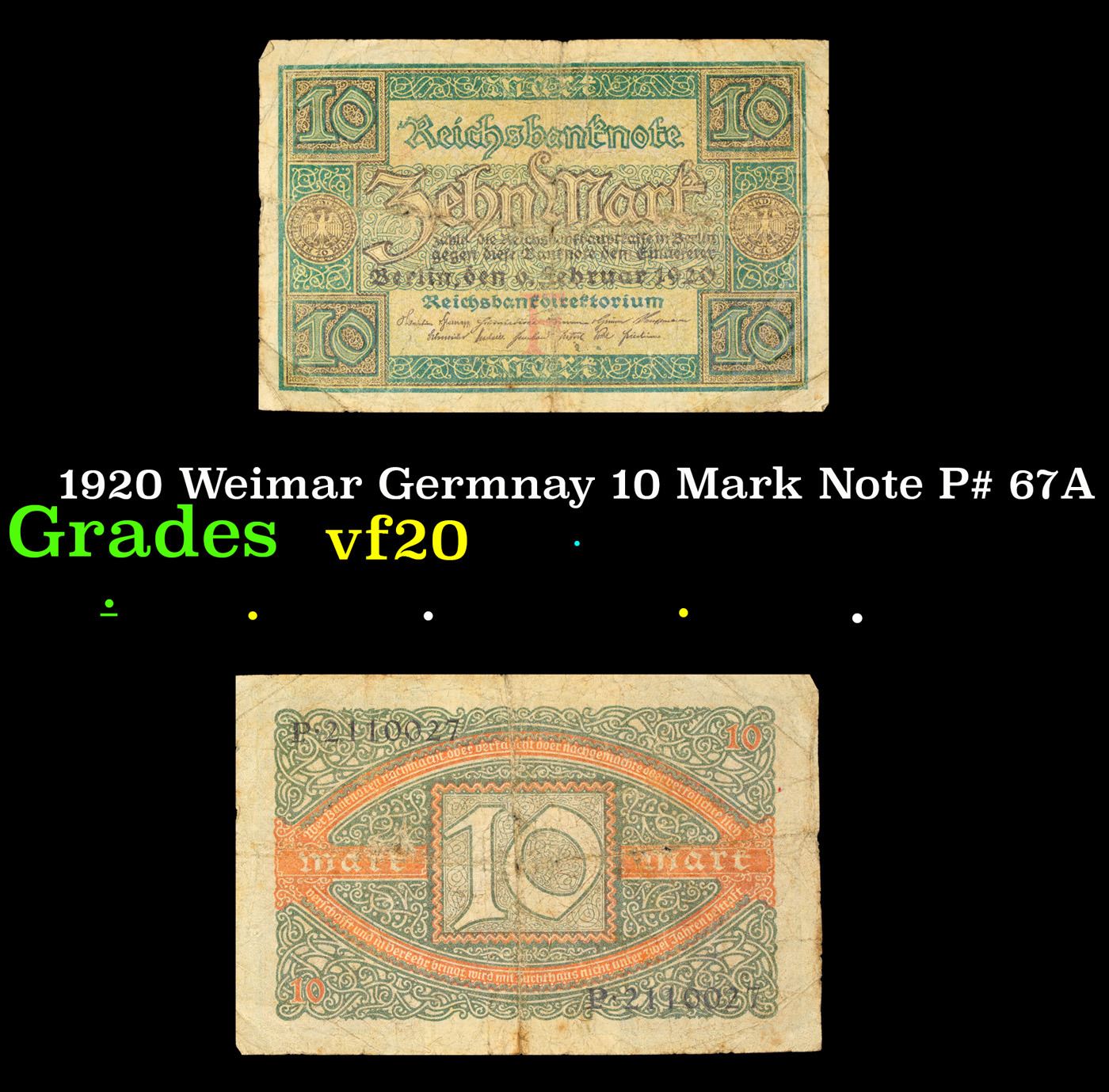 1920 Weimar Germnay 10 Mark Note P# 67A Grades vf, very fine