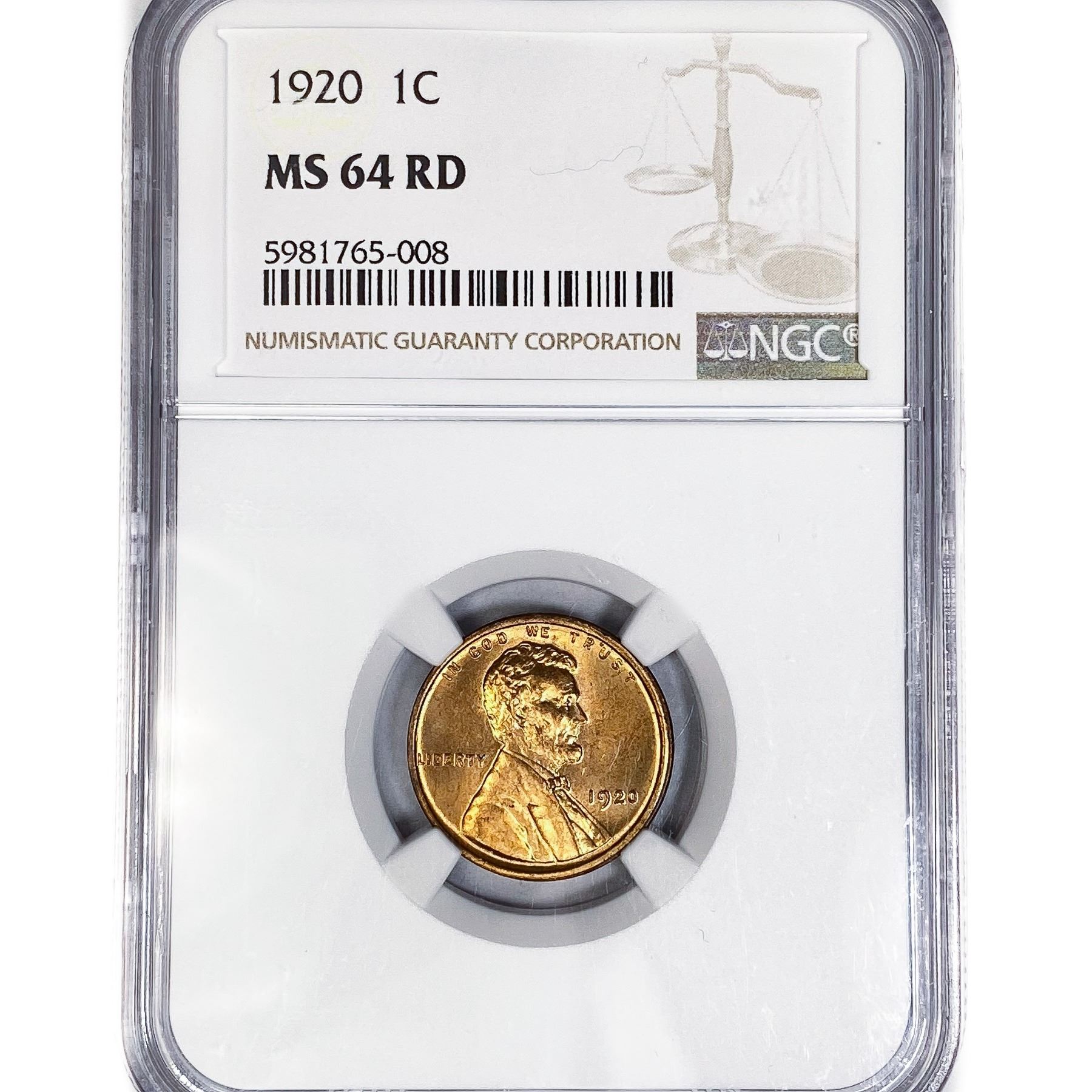 1920 Wheat Cent NGC MS64 RD