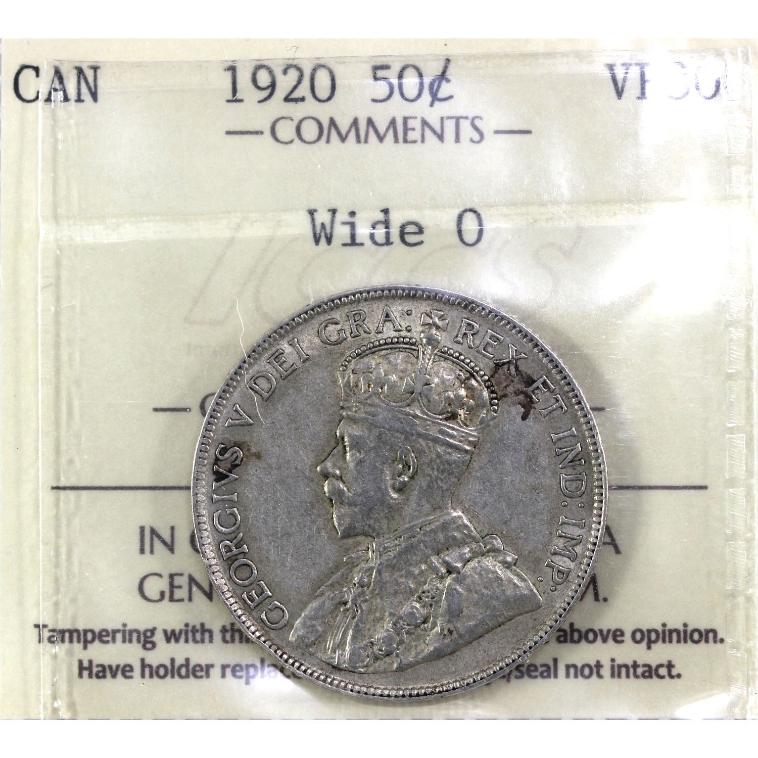 1920 Wide 0, Canada 50-cent ICCS Certified VF-30