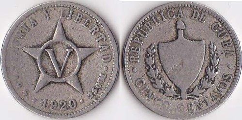 1920 cuba 5 centavos unc coin
