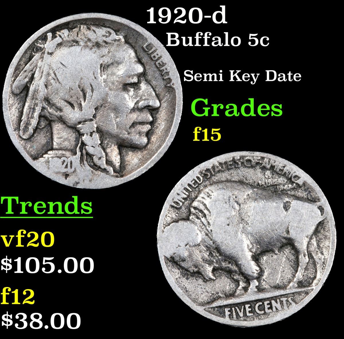 1920-d Semi Key Date . Buffalo Nickel 5c Grades f+.