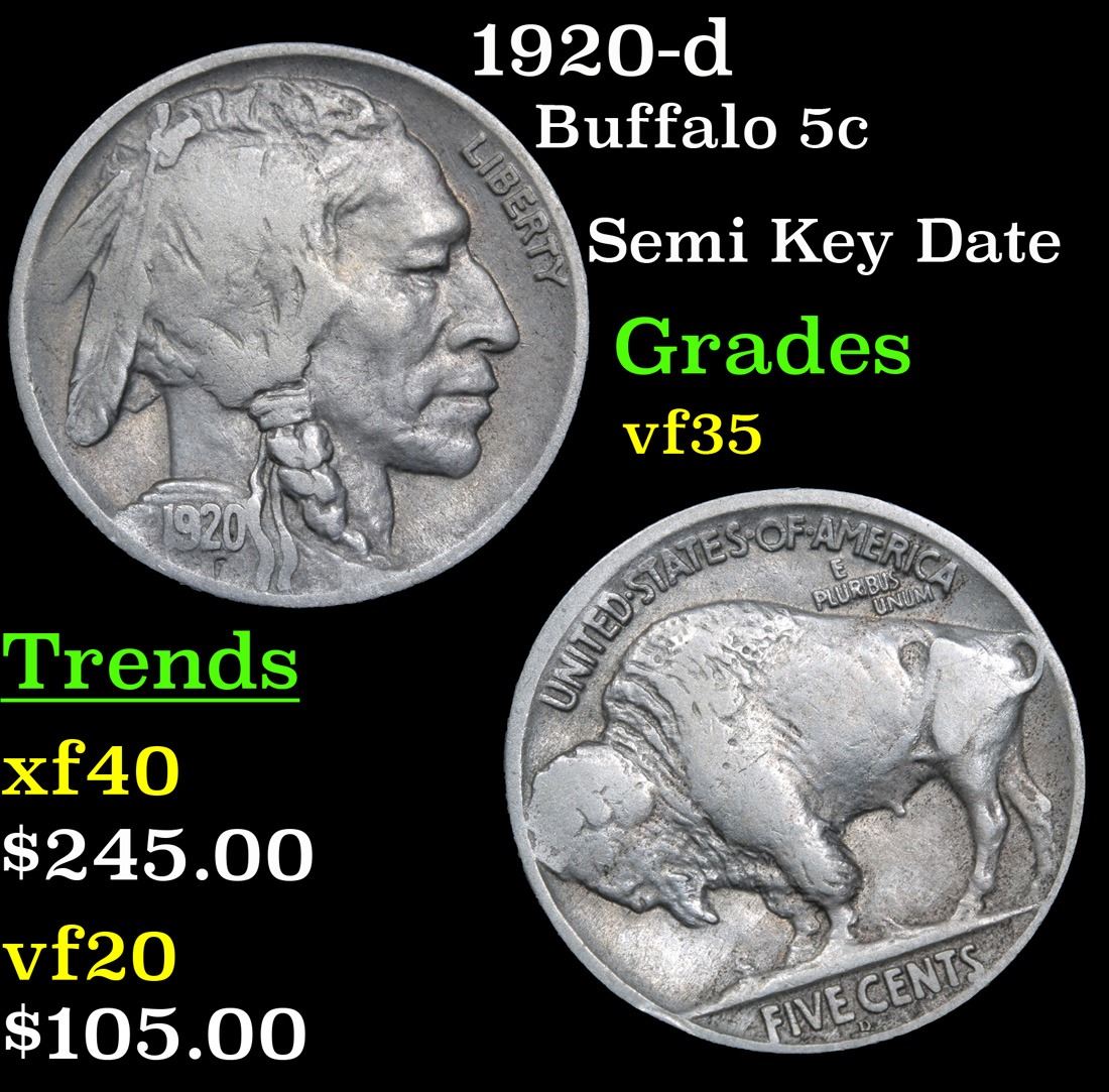 1920-d Semi Key Date . Buffalo Nickel 5c Grades vf++.