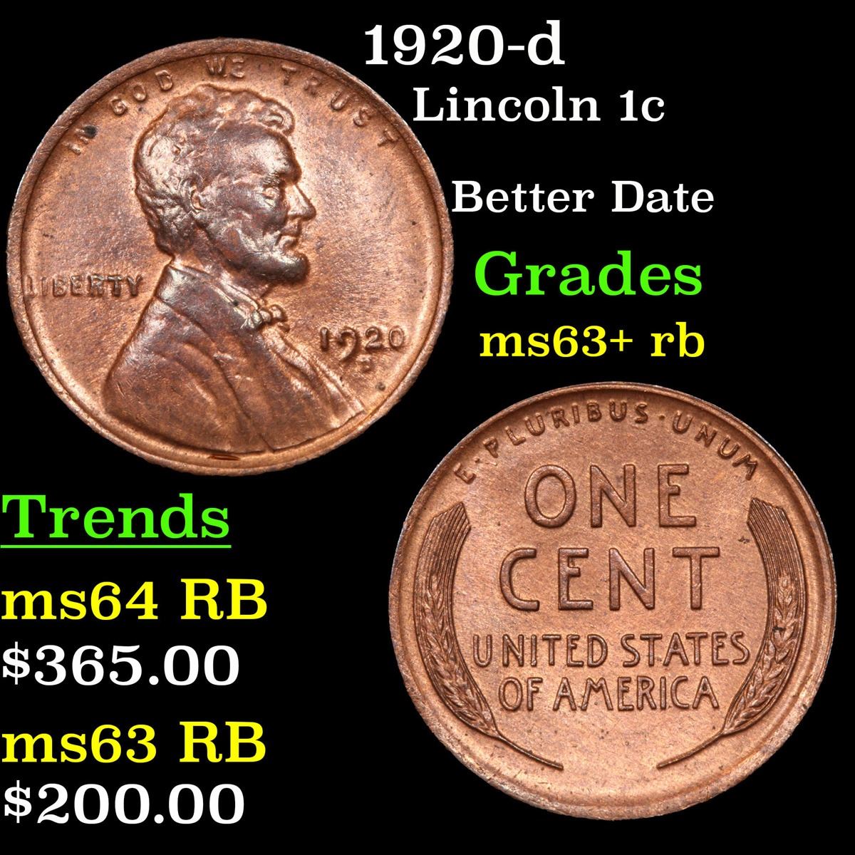 1920-d Better Date . Lincoln Cent 1c Grades Select+ Unc RB.