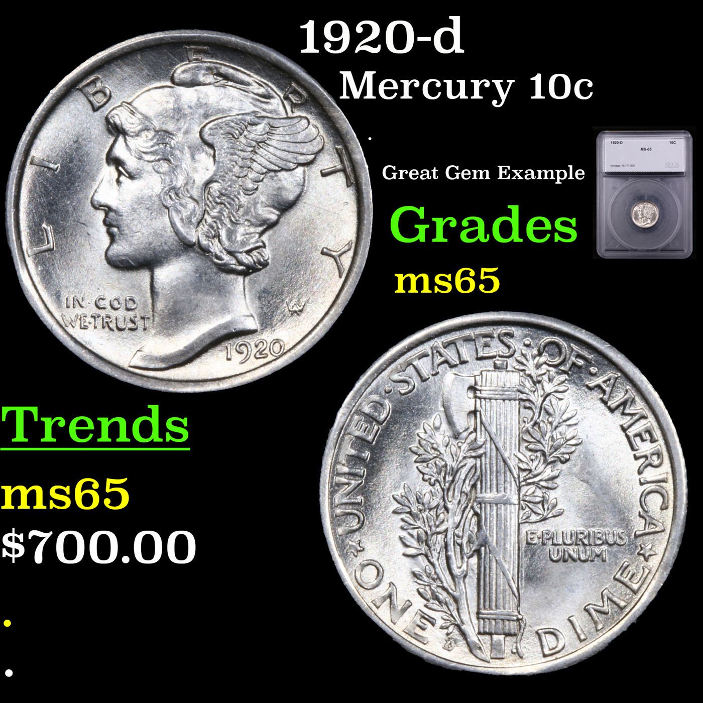 1920-d Mercury Dime 10c Graded ms65 BY SEGS.