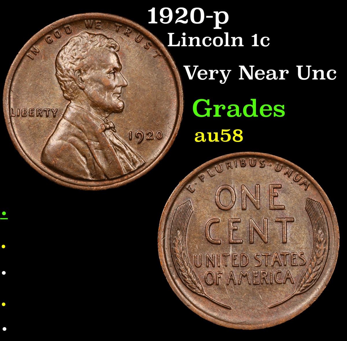 1920-p Lincoln Cent 1c Grades Choice AU/BU Slider.