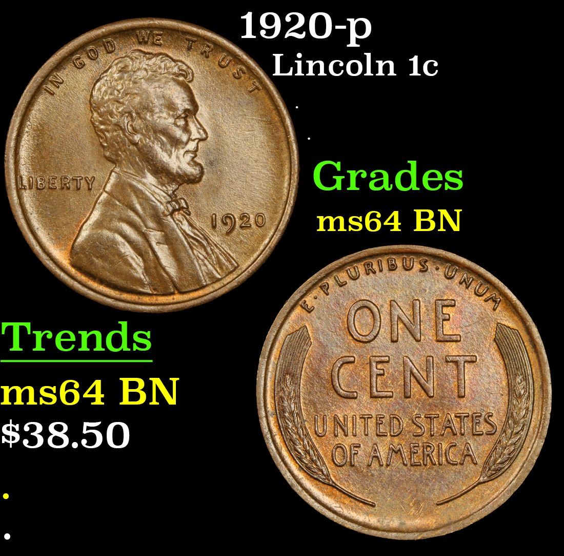 1920-p Lincoln Cent 1c Grades Choice Unc BN.