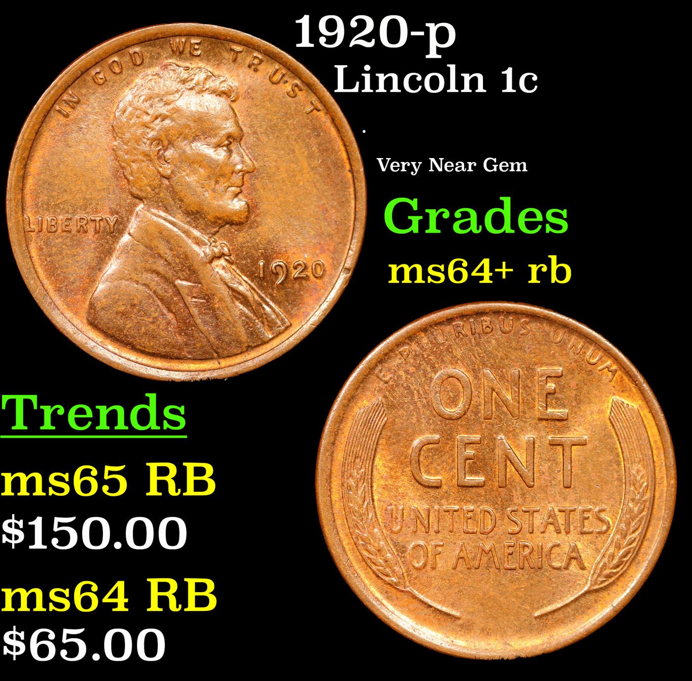 1920-p Lincoln Cent 1c Grades Choice+ Unc RB.