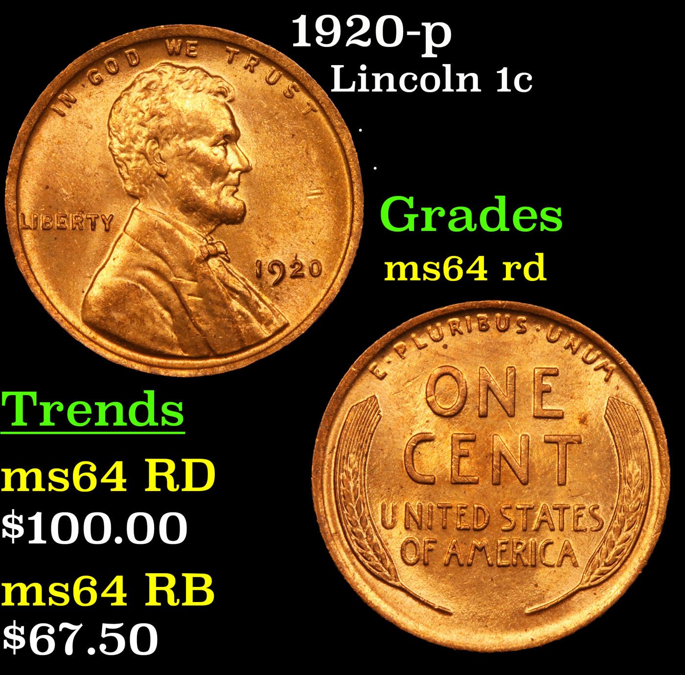 1920-p Lincoln Cent 1c Grades Choice Unc RD.