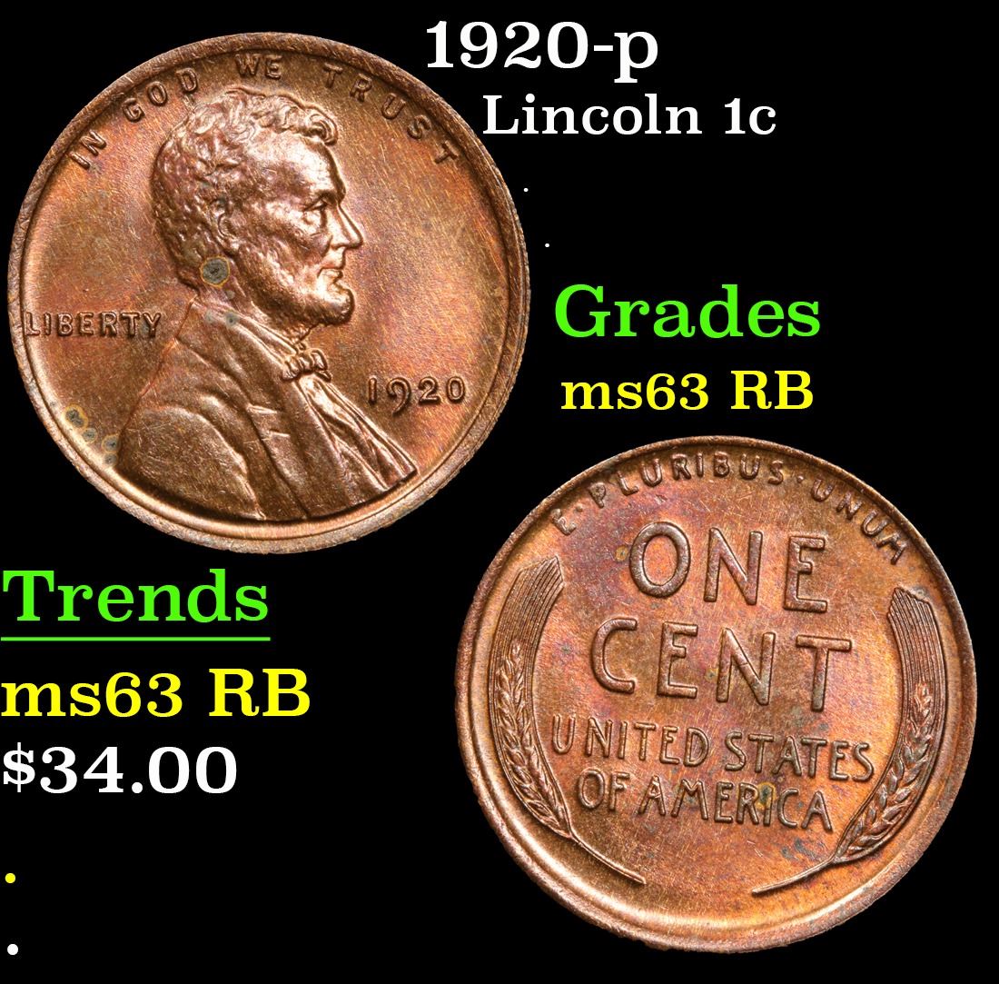 1920-p Lincoln Cent 1c Grades Select Unc RB.