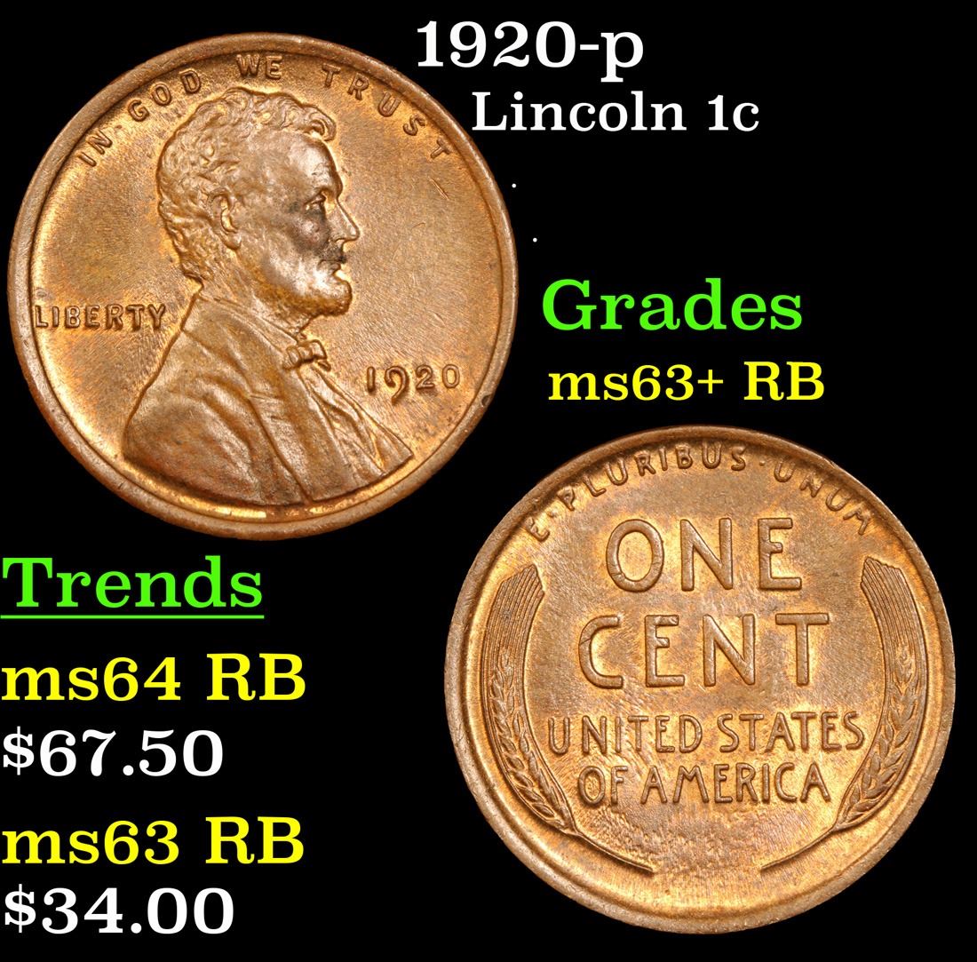 1920-p . . Lincoln Cent 1c Grades Select+ Unc RB.