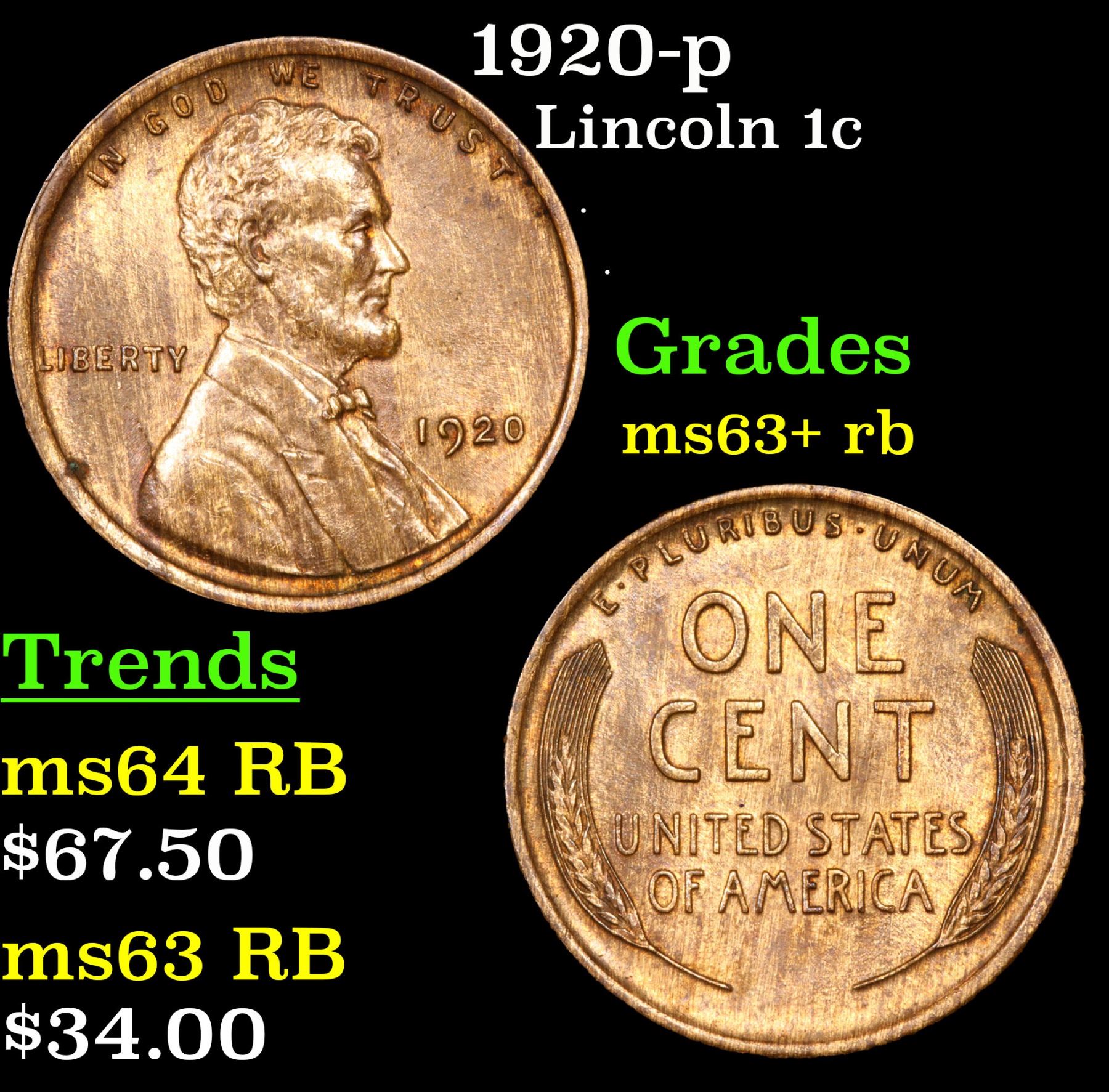 1920-p . . Lincoln Cent 1c Grades Select+ Unc RB.
