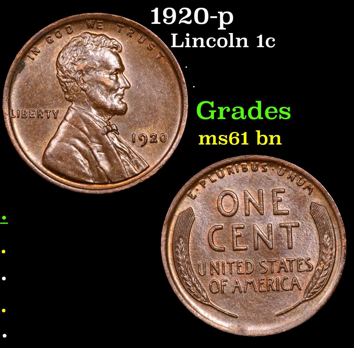 1920-p . . Lincoln Cent 1c Grades Unc+ BN.