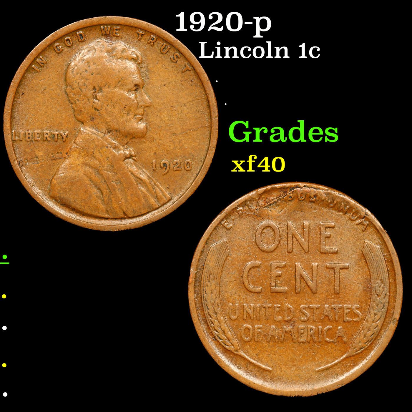 1920-p Lincoln Cent 1c Grades xf.
