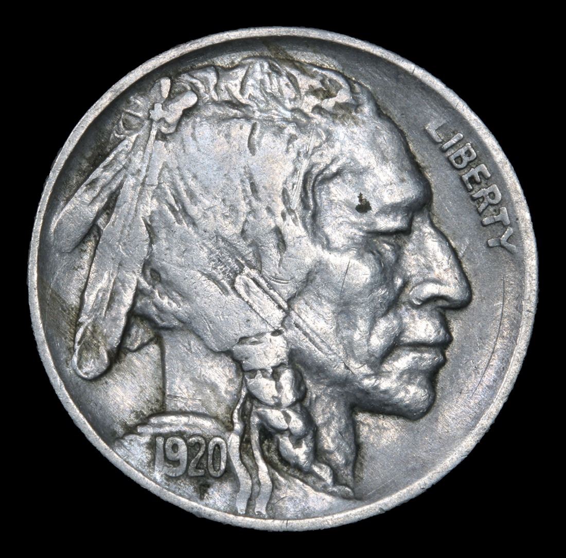 1920-p Mint Error Lamination Error Obv . Buffalo Nickel 5c Grades vf++.