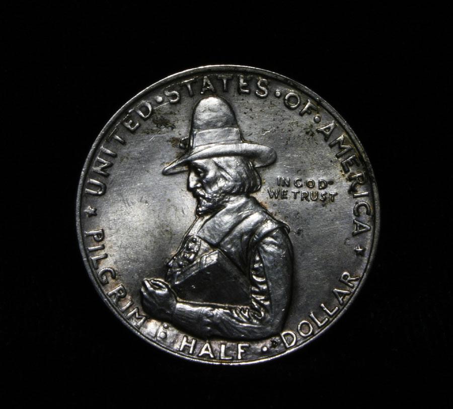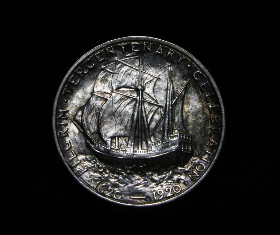 Nice Example with a bit of toning on the reverse. When examining a Pilgrim look for wear on the crow's nest and on the Cheek Bone on the obverse as these are the high points. Coin World's Coin Values lists ms64 as $170 and The Wholesale Greysheet Value of ms64 at $90. Estimated Value $130