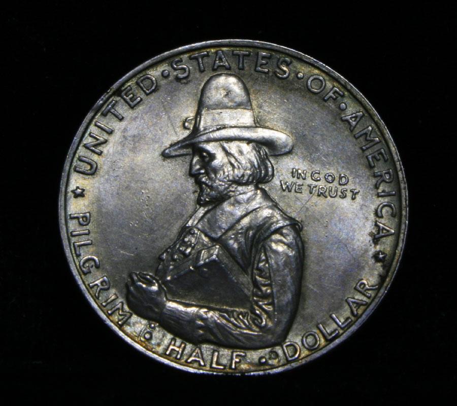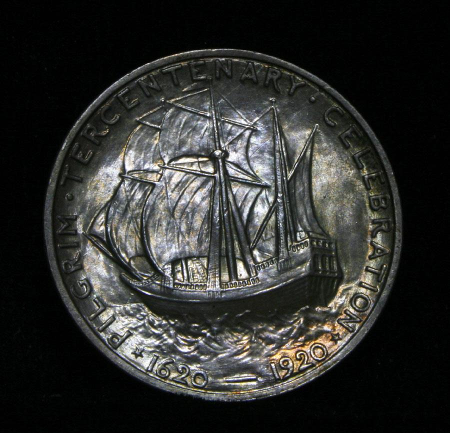 All Original Example with some Color as a bonus. High end ms64. When examining a Pilgrim look for wear on the crow's nest and on the Cheek Bone on the obverse as these are the high points. Coin World's Coin Values lists ms64 as $170 and The Wholesale Greysheet Value of ms64 at $90. Estimated Value $130