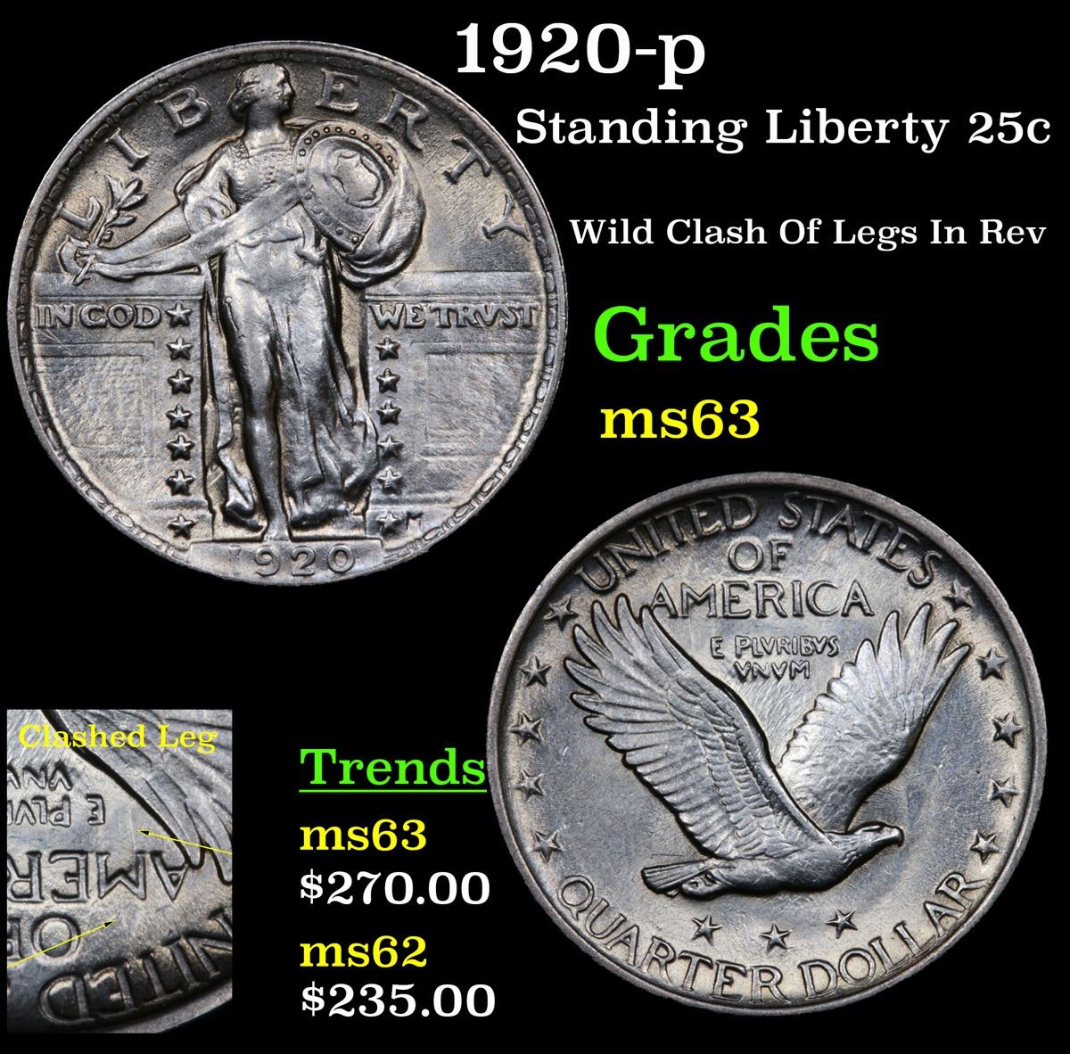 1920-p Standing Liberty Quarter 25c Grades Select Unc.