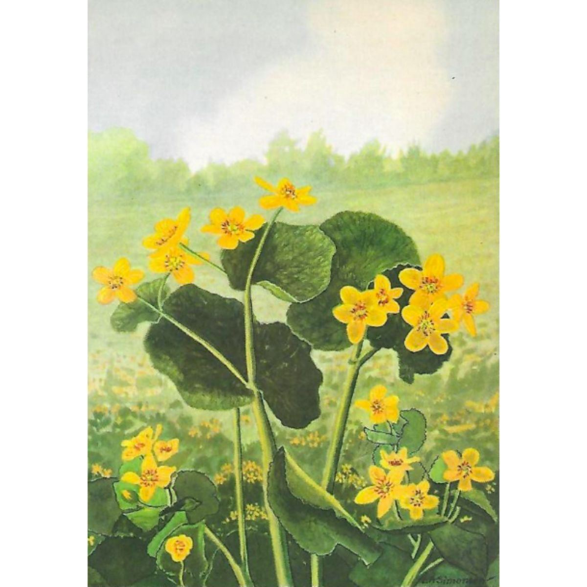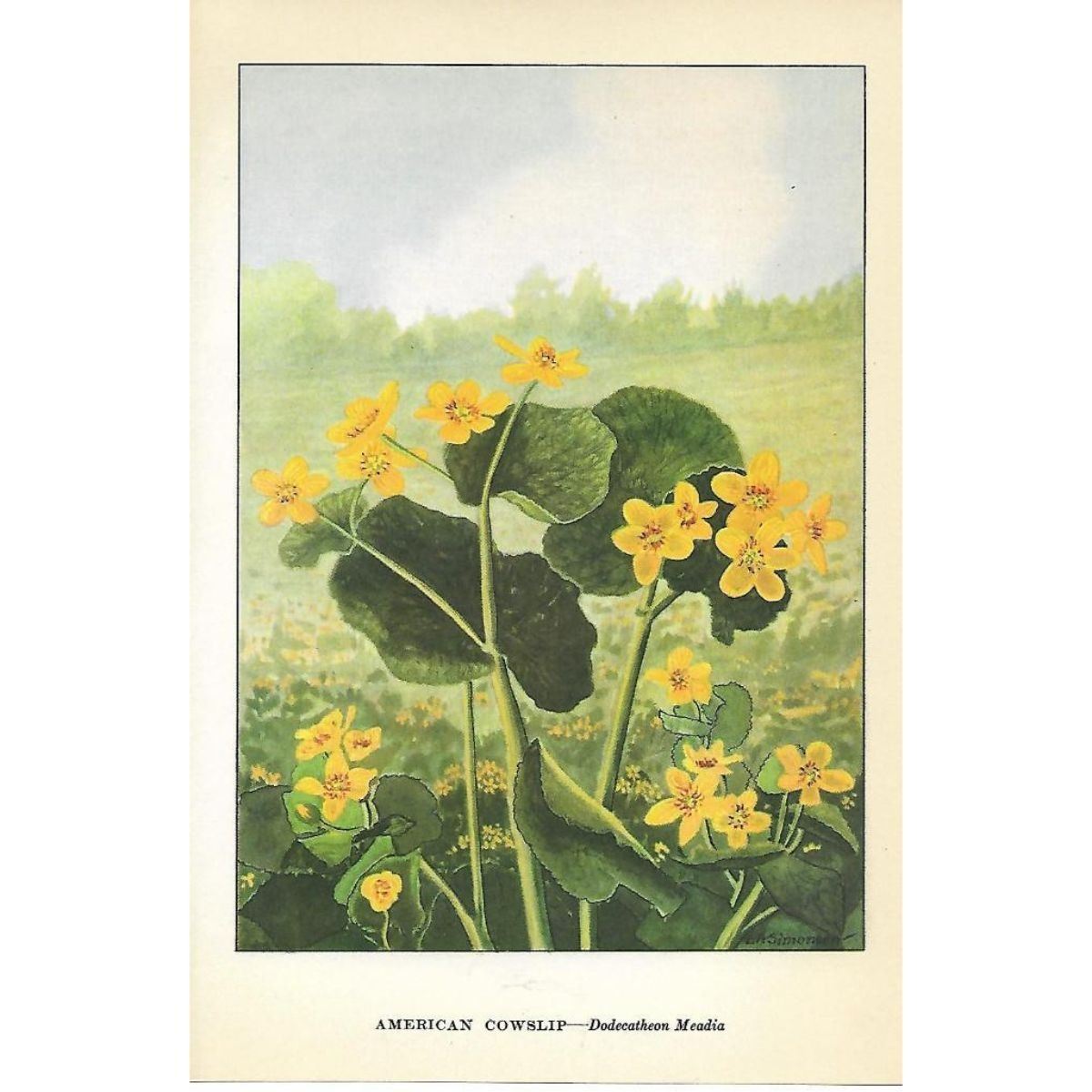 American Cowslip color lithograph print, from a 1926 edition of The Nature Library, Wild Flowers by Neltje Blanchan. 5" X 8". Â