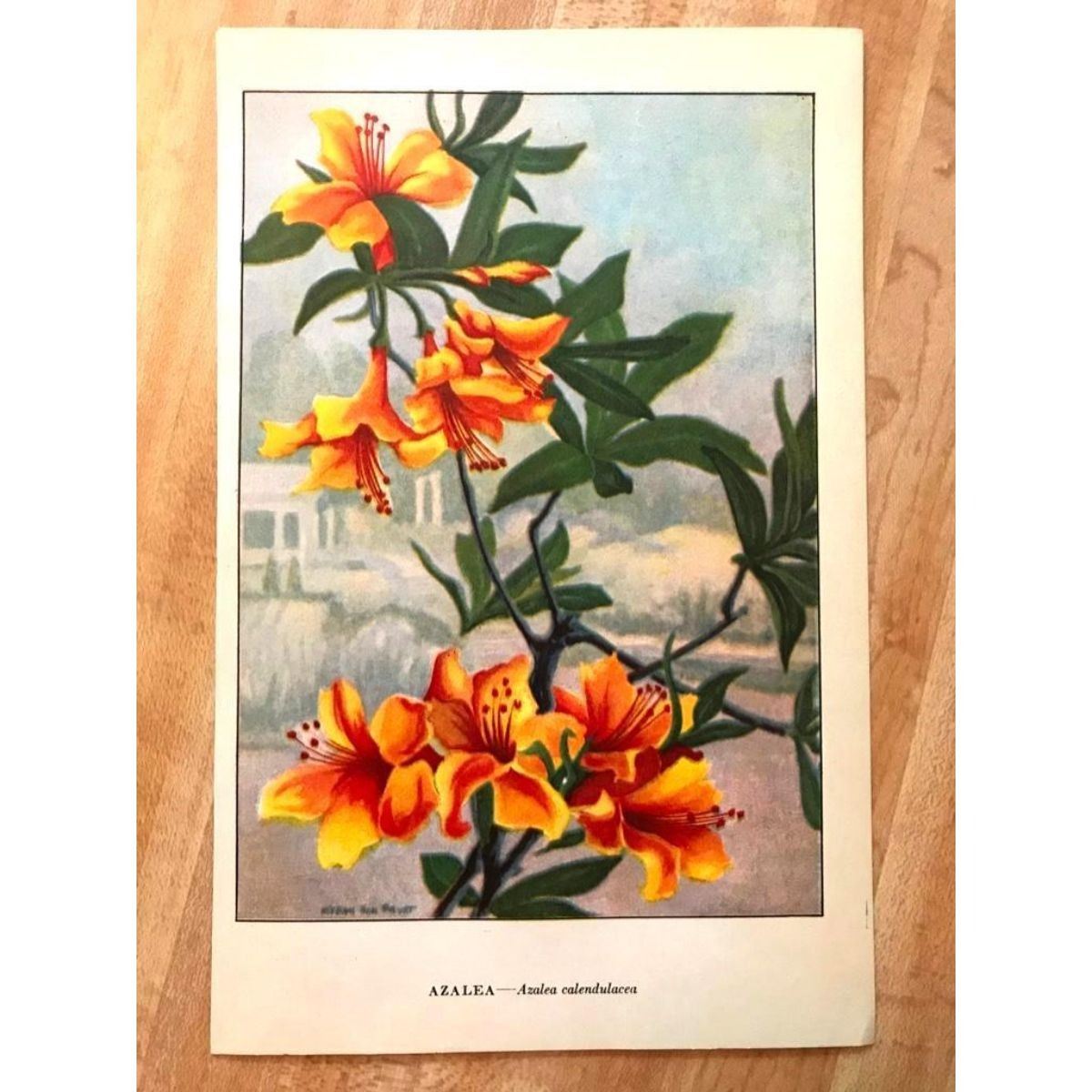Azalea color lithograph print, from a 1926 edition of The Nature Library, Garden Flowers, by Frank M. McCurdy. 5" X 8".