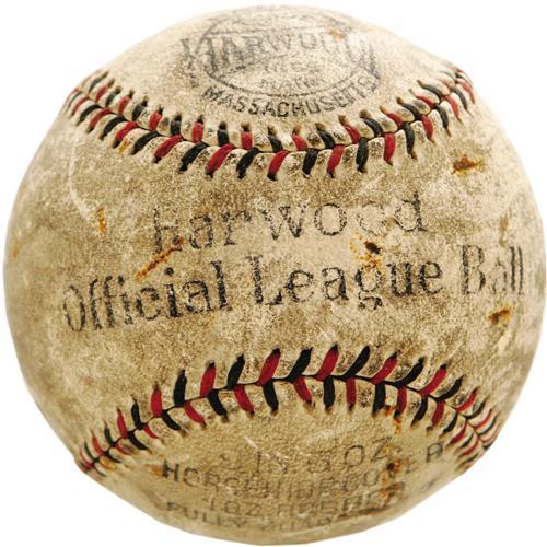 <B>1920's Babe Ruth Single Signed Baseball.</B></I> The quotation marks around the "Babe" on the sweet spot of this Harwood Official League ball assure that this one dates from the glory days of Murderer's Row, around the time the Bambino clubbed sixty in a season. While not an official ball, the red and blue stitching gives the look of one, and the blue ink still projects as a nice 7/10 from the toned horsehide. The alternate panels show a fair amount of scuffing, and one has a bit of writing in an unknown hand, but this is definitely not another signature, nor does it affect the display. A fine early Ruth solo. <I>LOA from PSA/DNA.</B></I>