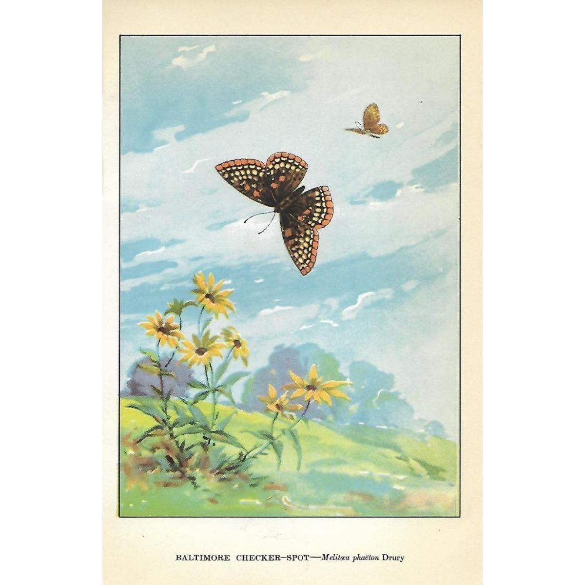 Baltimore Checker-Spot butterfly color lithograph print, from a 1926 edition of The Nature Library, Animals by Clarence M. Weed. 5" X 8". Â