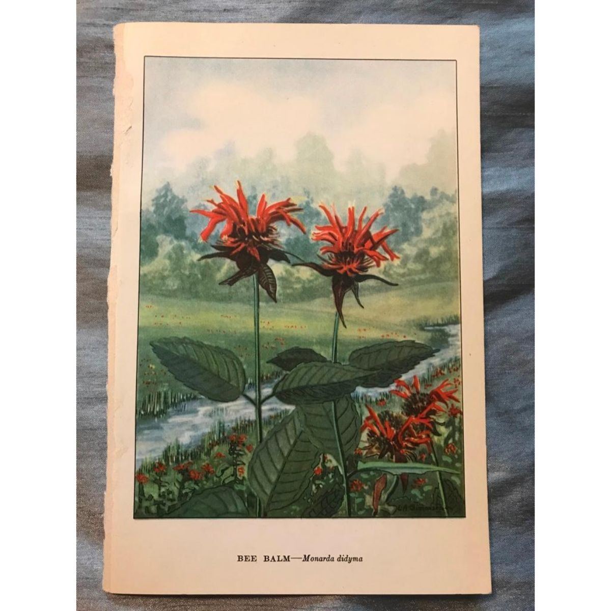 Bee Balm color lithograph print, from a 1926 edition of The Nature Library, Wild Flowers by Neltje Blanchan. 5" X 8".Â