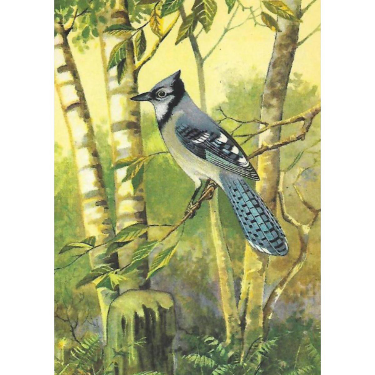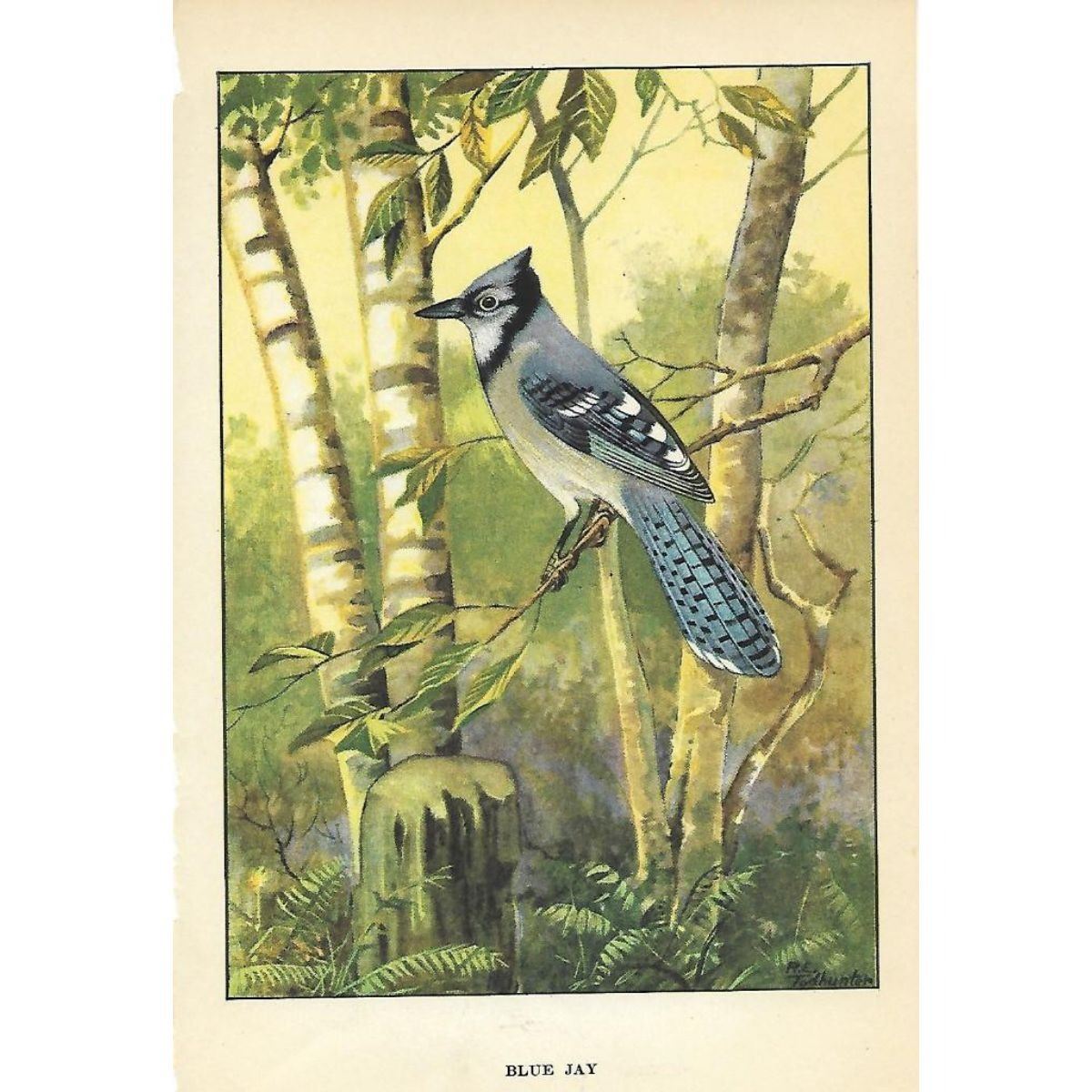 Blue Jay color lithograph print, from a 1926 edition of The Nature Library, Birds, selected from the writings of Neltje Blanchan, illustrations by R. E. Todhunter. 5" X 8".