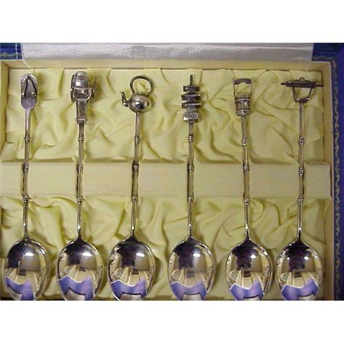 <tr><td>Title:1920's Box of 6 Figural Sterling Spoons</td></tr>