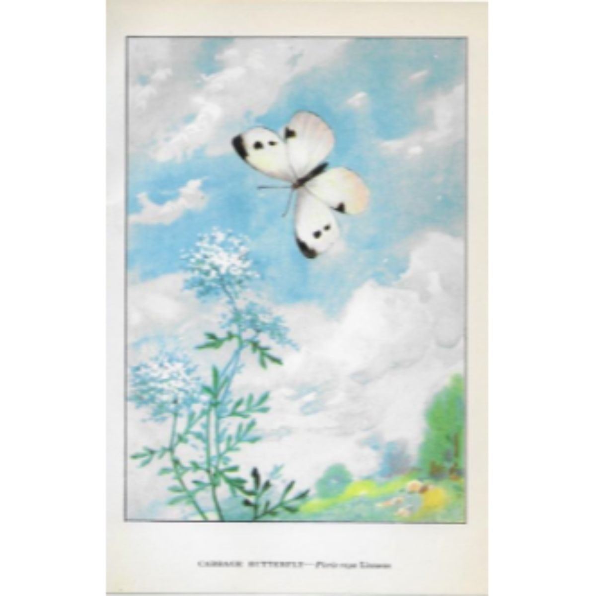 Cabbage Butterfly color lithograph print, from a 1926 edition of The Nature Library, Butterflies by Clarence M. Weed. 5" X 8".