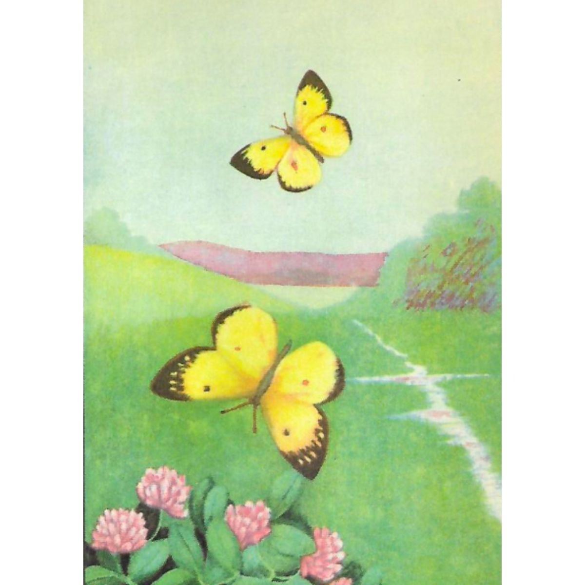Clouded Sulphur butterfly color lithograph print, from a 1926 edition of The Nature Library, Animals by Clarence M. Weed. 5" X 8". Â