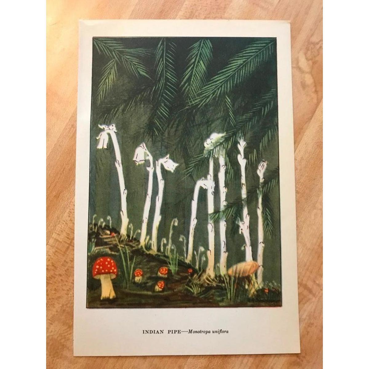 Indian Pipe color lithograph print, from a 1926 edition of The Nature Library, Wild Flowers. 5" X 8".Â